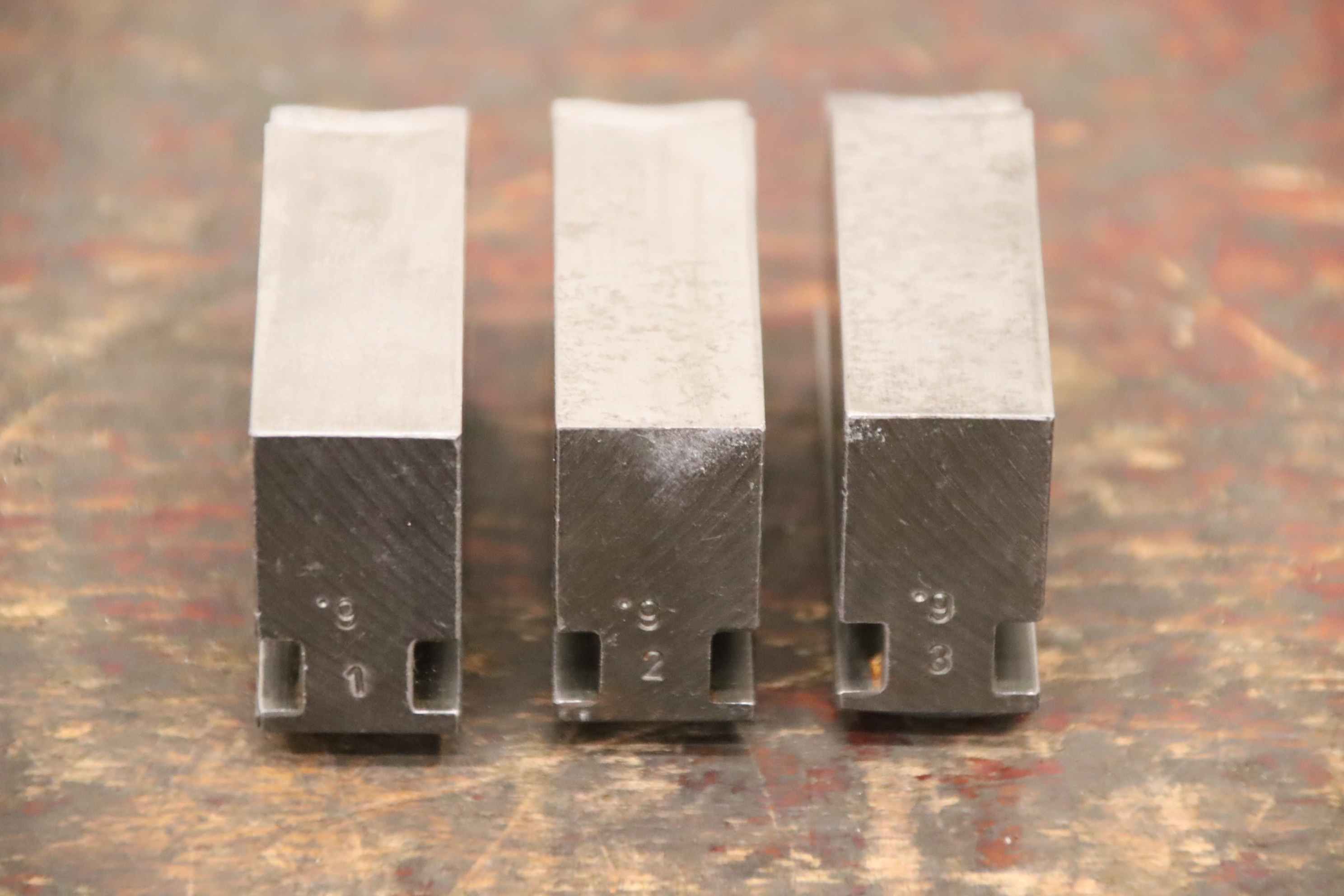 Interchangeable jaws, top jaws, three-jaw chucks, segment jaws, clamping jaws, step block jaws, step top jaws, block jaws, base jaws-Top jaws: Jaw set for three-jaw lathe chuck, soft-Jaw width: 20 mm-Dimensions: see photo technical drawing-Total dimensions: 67/60/H41 mm-Total weight: 1.0 kg