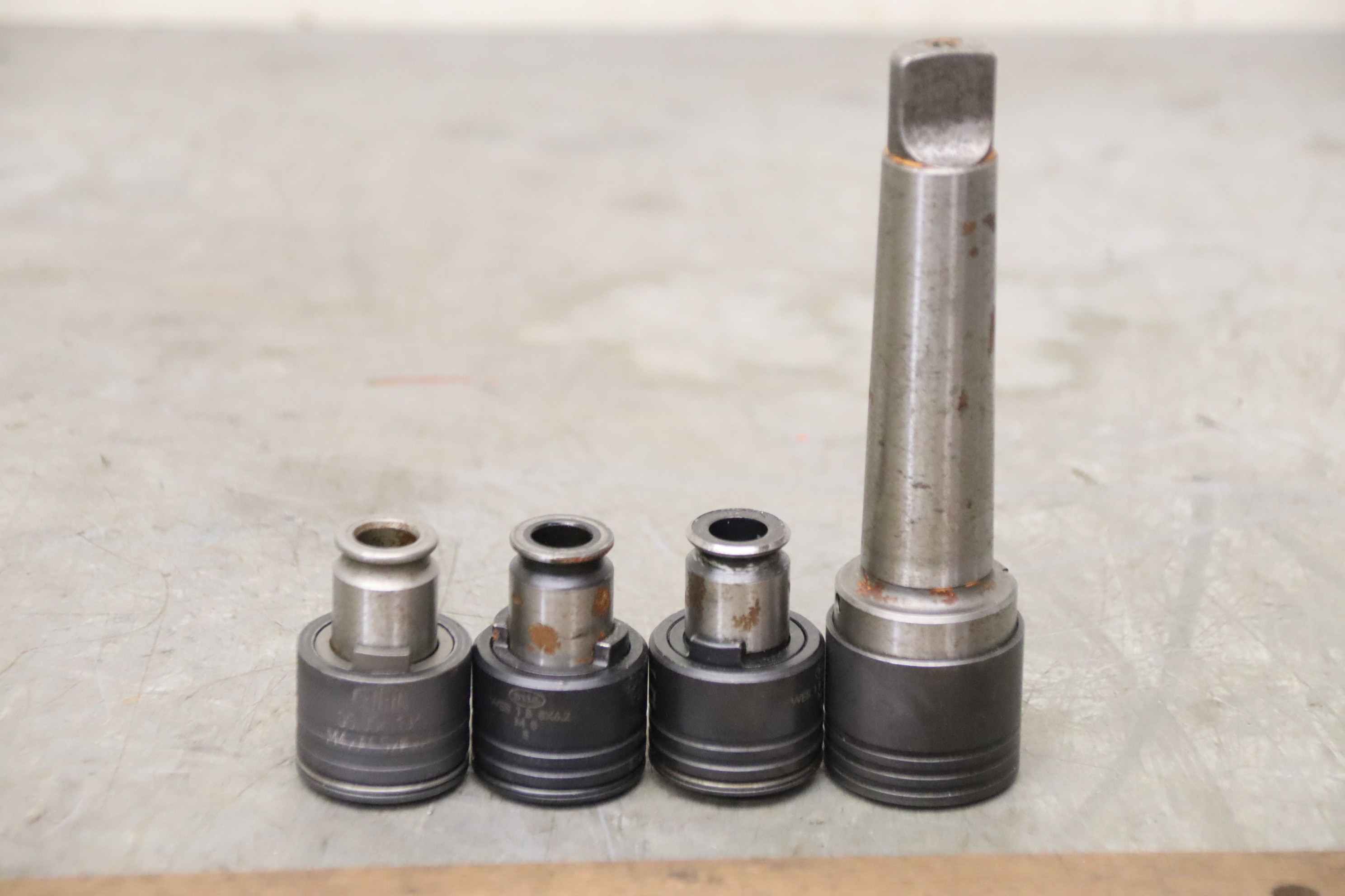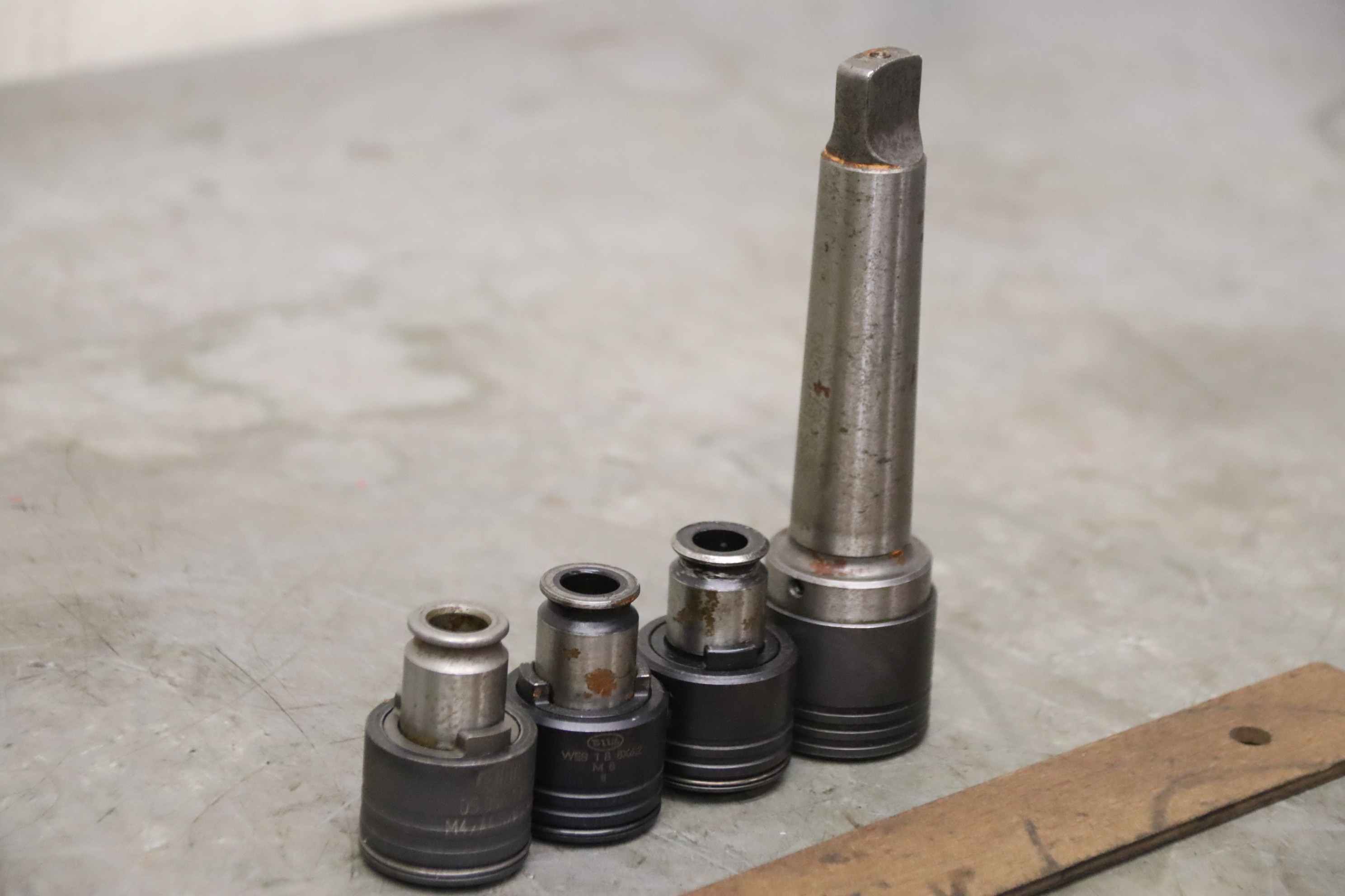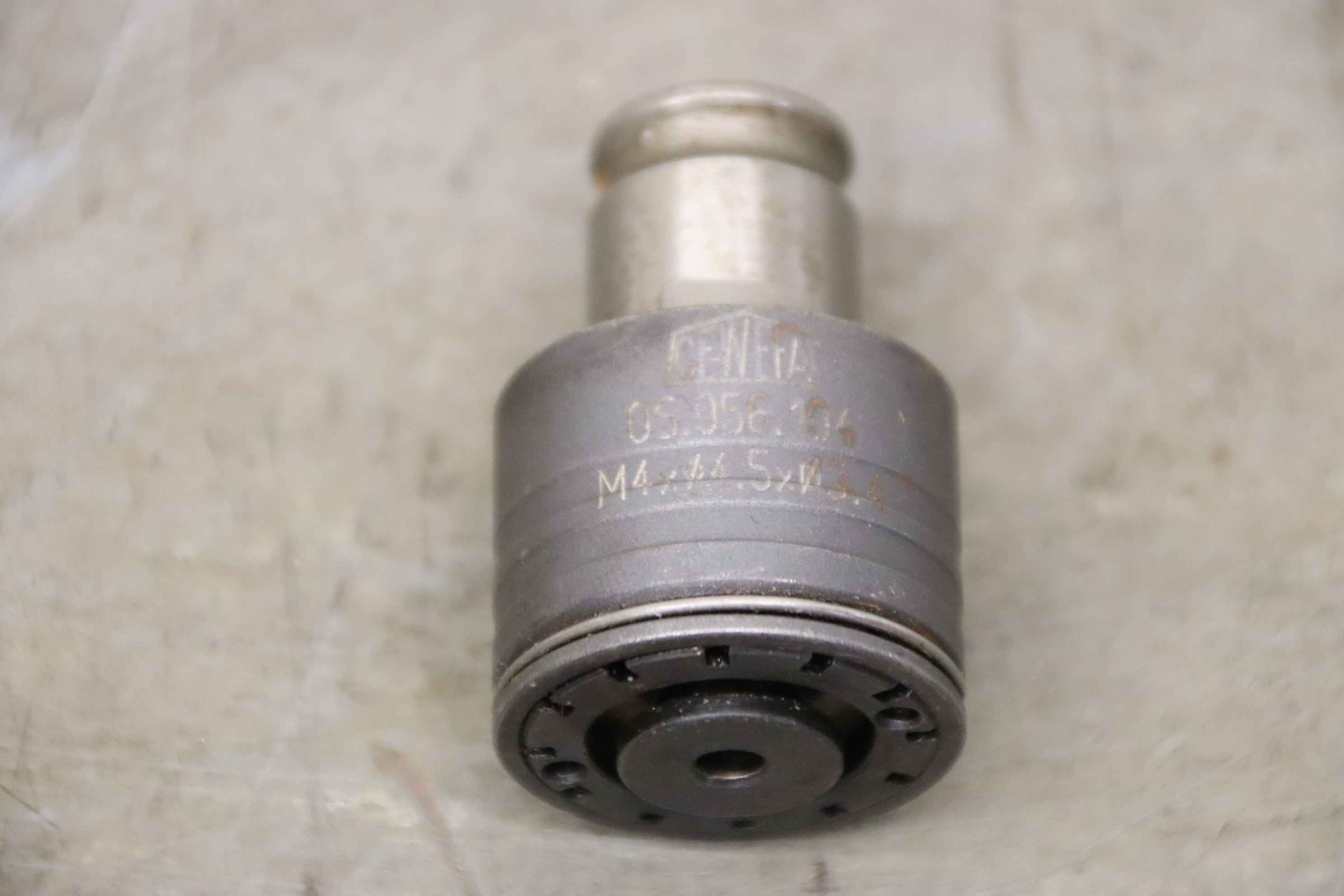 Thread cutting chuck, thread chuck, tap chuck, milling tool, thread cutting attachment, thread cutting quick change chuck-Manufacturer: Bilz/Gewefa, thread cutting quick-change chuck MK3-Intake: Type Bilz WFLK 115 MK 3-Type: Gewefa 05.056.104 M4xØ4.5xØ3.4-Type: Bilz WES 1 B 8x6.2 M 8-Type: Bilz WES 1 B KP 6x4.9 M 8-Total dimensions: 140/36/H140 mm-Weight: 0.9 kg