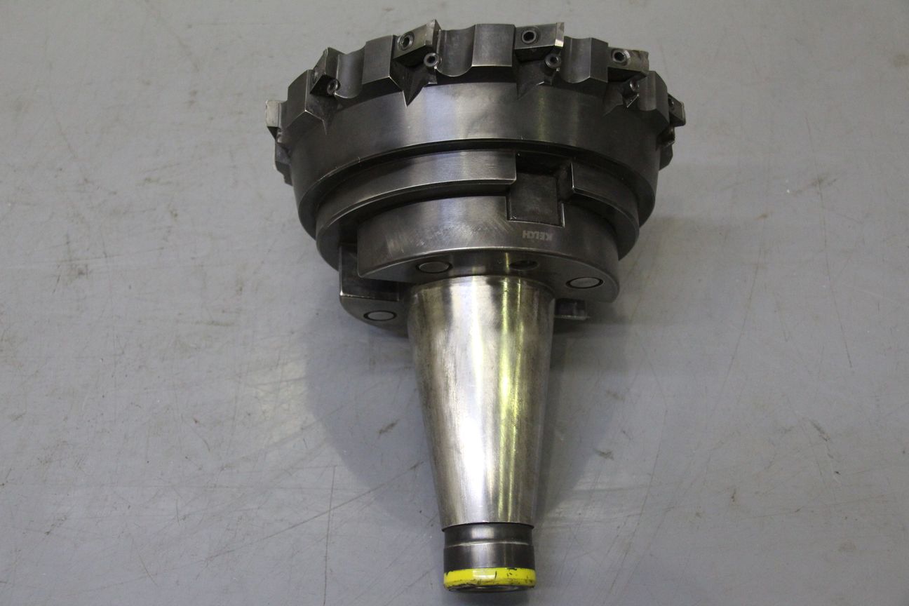 Cutter head, milling chuck, carbide cutter, indexable insert cutter -Diameter: 200 mm -Number of teeth: 12 -Indexable inserts: Carbide -Recording: SK50 -Manufacturer: Kelch -1x SK50 shank for end mill: Ø 40 mm -Weight: 18 kg