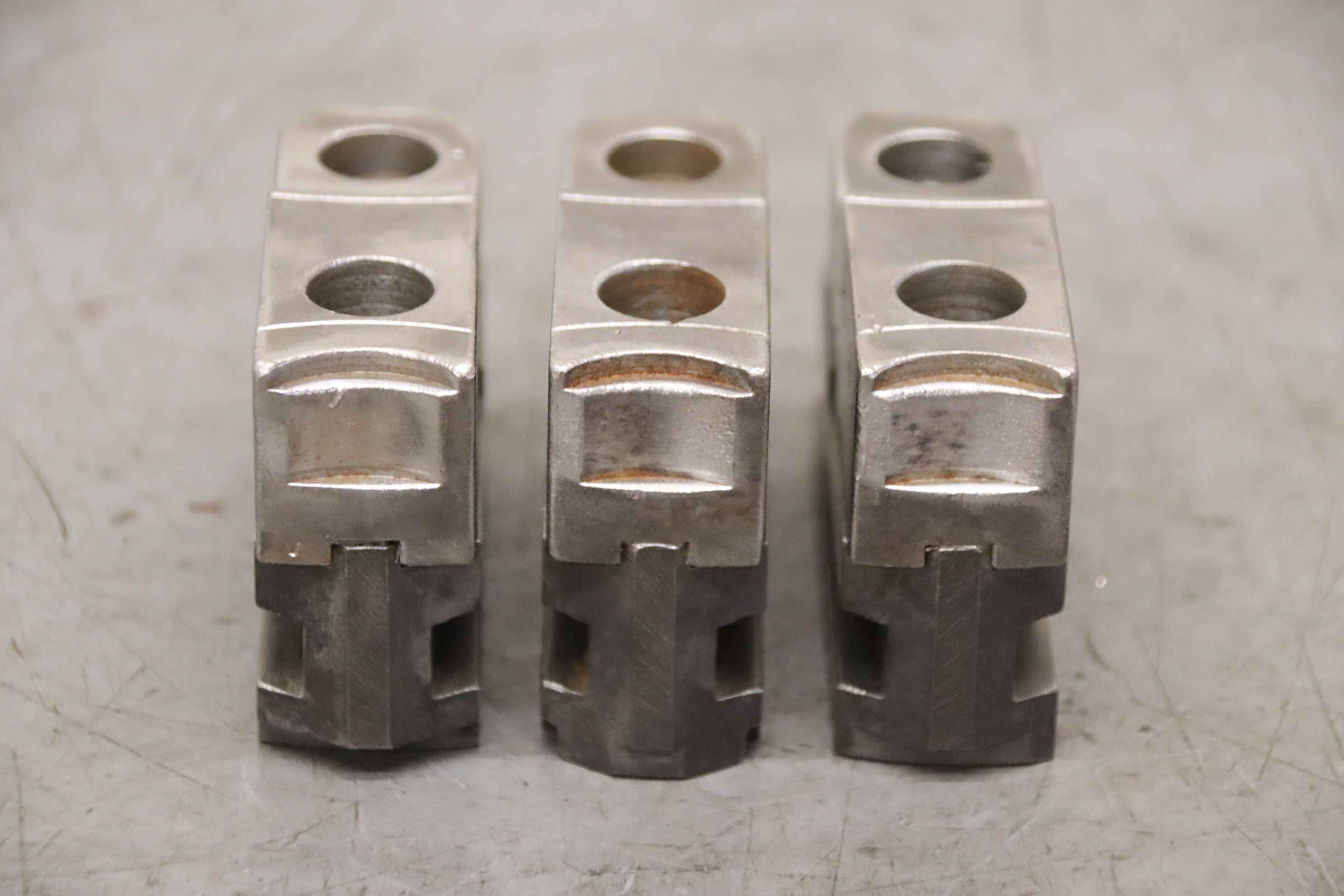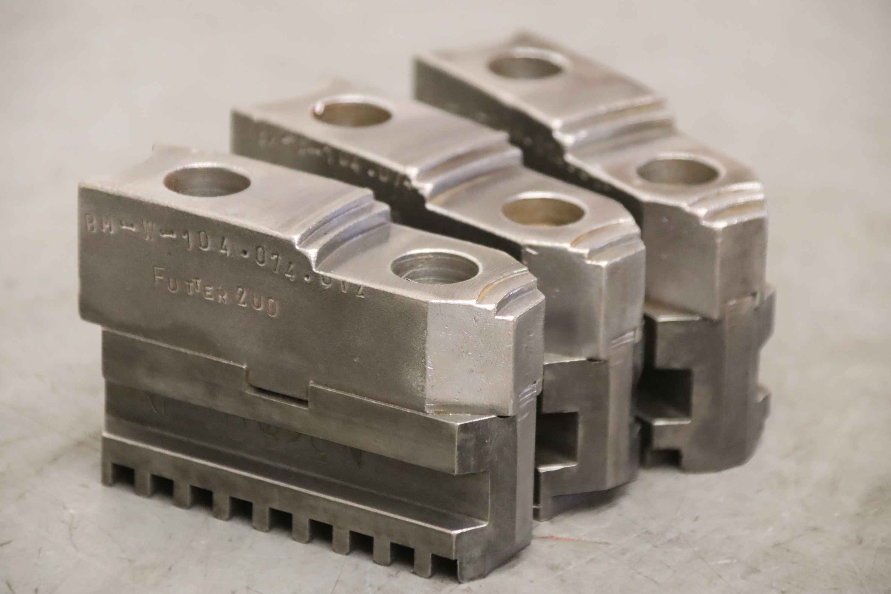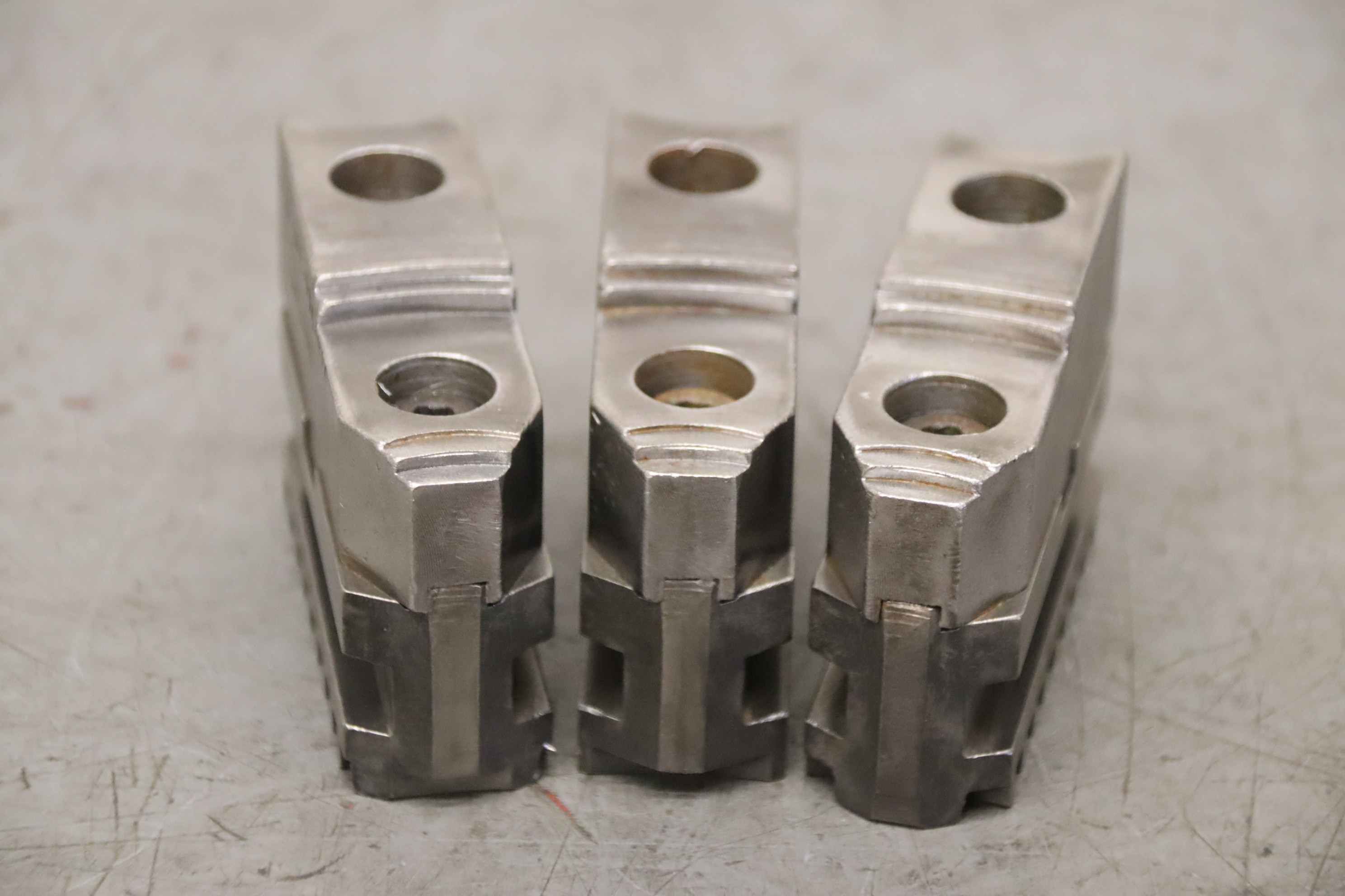 Interchangeable jaws, top jaws, three-jaw chucks, segment jaws, clamping jaws, step block jaws, step top jaws, block jaws, base jaws-Top jaws: Jaw set for three-jaw lathe chucks, soft-Jaw width: 26 mm-Dimensions: see photo technical. drawing-Total dimensions: 83/75/H55 mm-Total weight: 2,0 kg