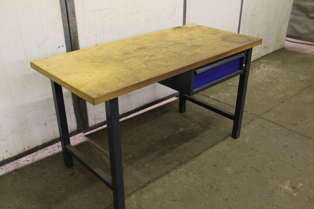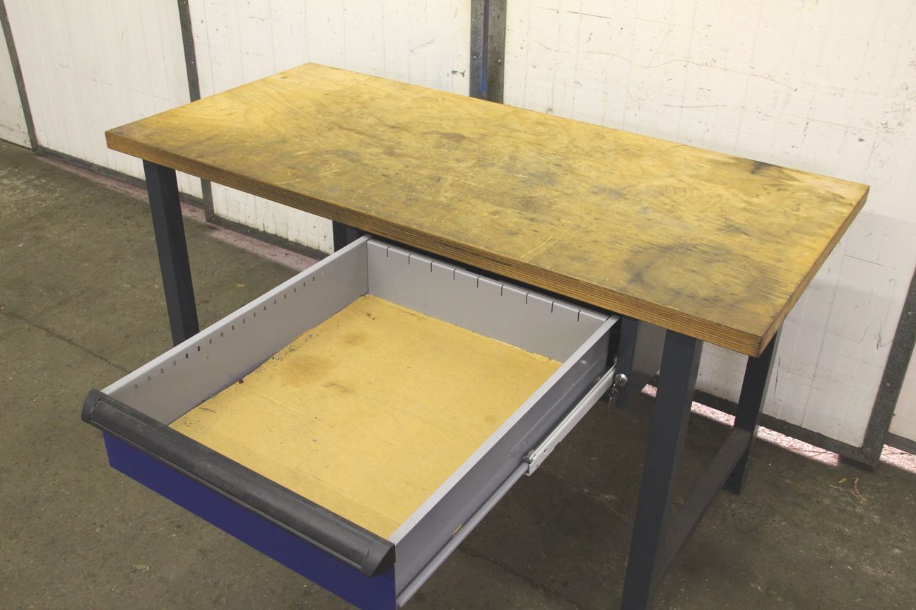 Workbench, work table, assembly bench-Width: 1500 mm-Depth: 700 mm-Height: 840 mm-Work top thickness: 40 mm-Lockable drawer: 1-Weight: 74 kg