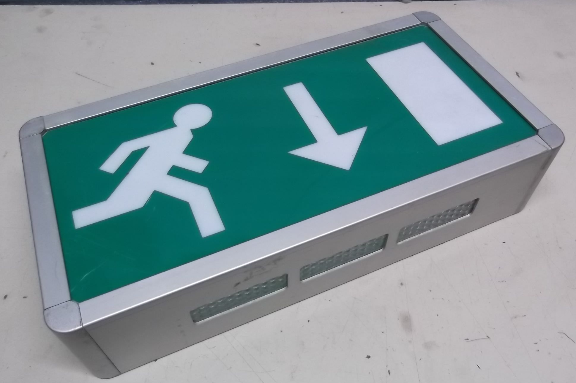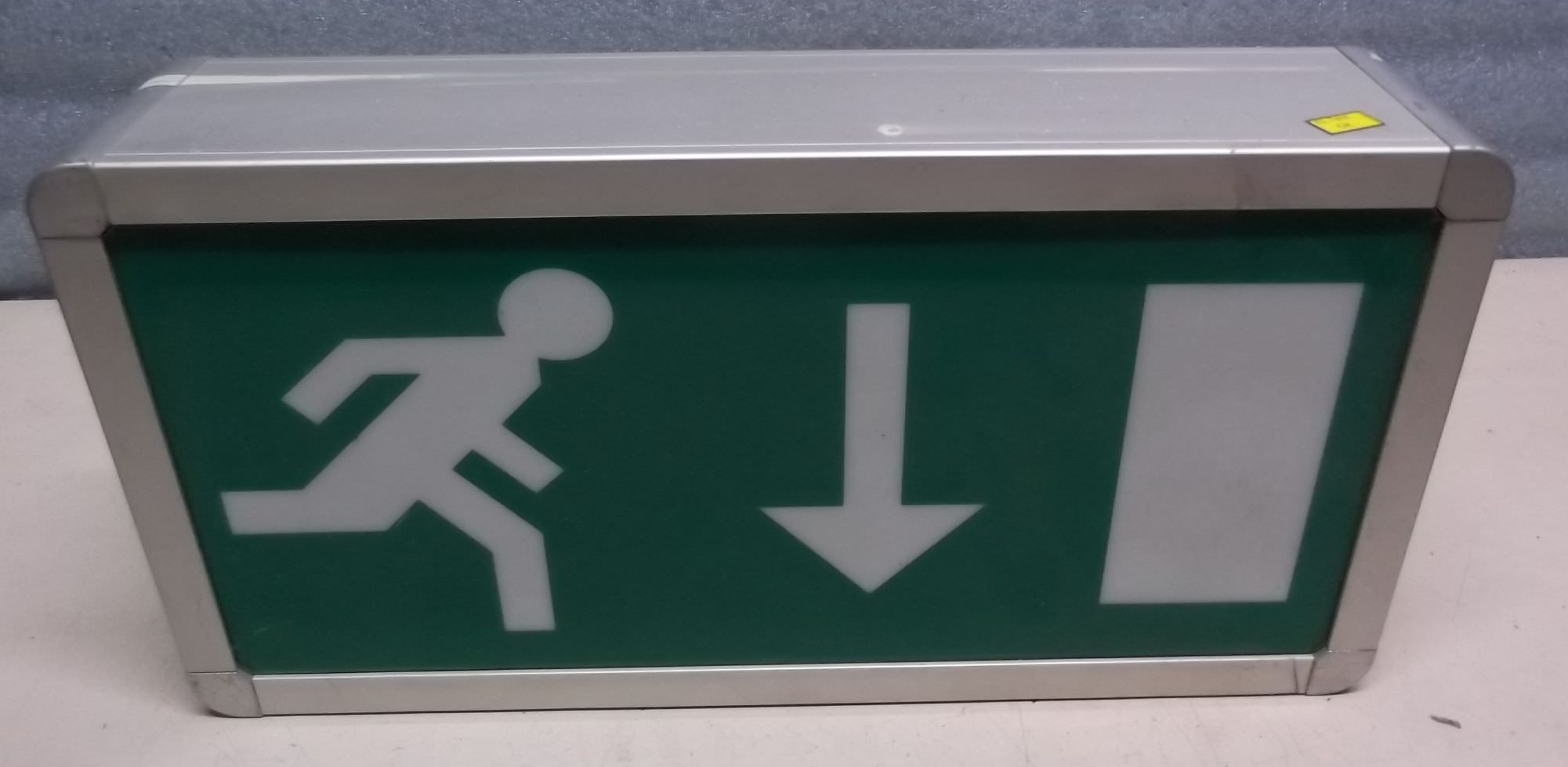 Emergency exit sign, escape route light, emergency and escape route lighting, emergency lights, escape routes, emergency lighting -Dimensions: 380/190/H90 mm -Connection: 230 V -Number: 11 lights available -Price: per piece -Weight: 1.9 kg/piece