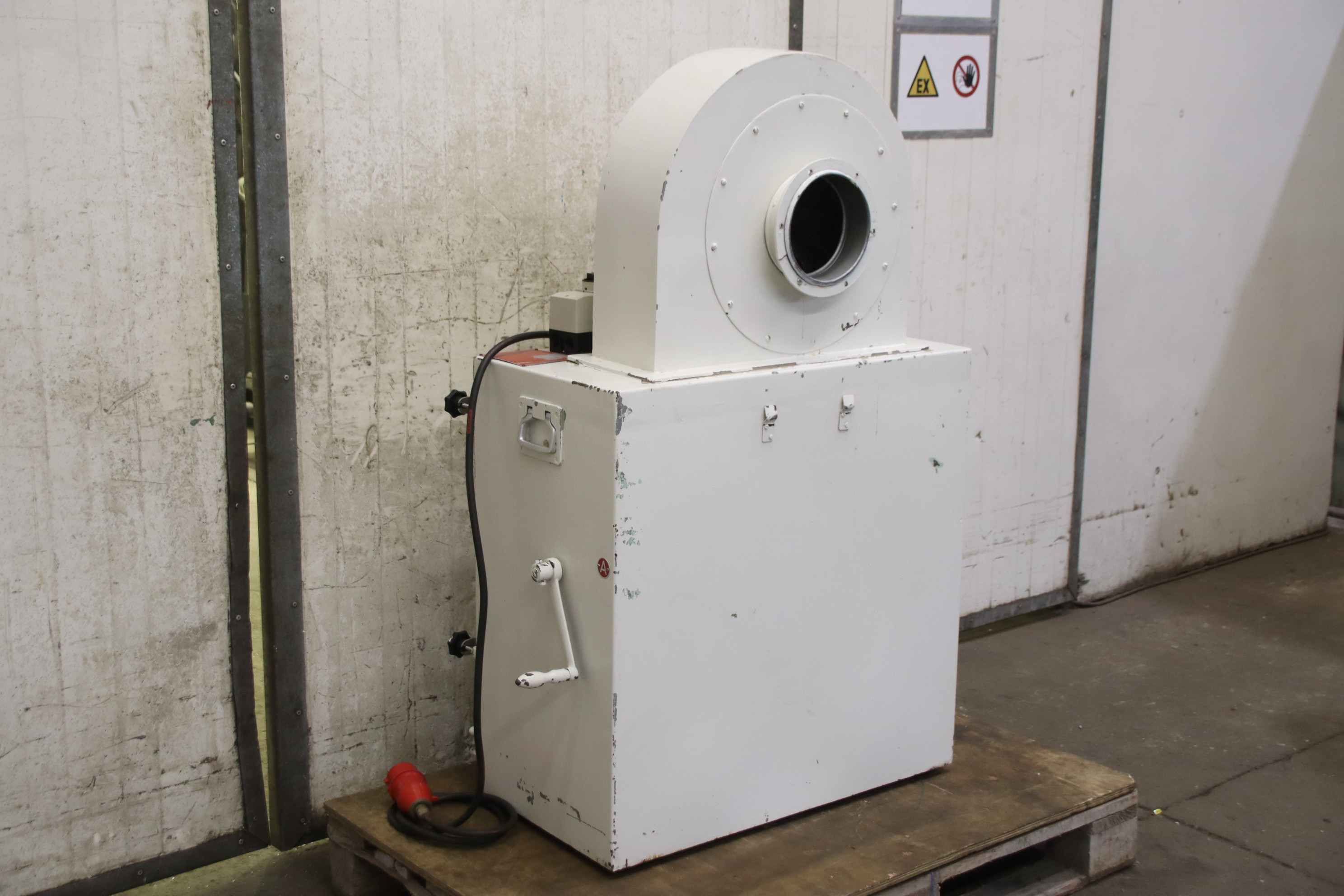 Dust extraction fan, extraction, dust blower, extraction system, dust blower, dust extraction device, welding fume filter, welding fume extraction, flue gas extraction fan, extraction filter system -Manufacturer:Oelde, extraction system, extraction filter system, type size 16 -Air flow: 22 m³/min -Engine: 1.85 kW -Speed: 2890 rpm -Individual components/technical data: see photos -Dimensions: 870/480/H1250 mm -Weight: 100 kg