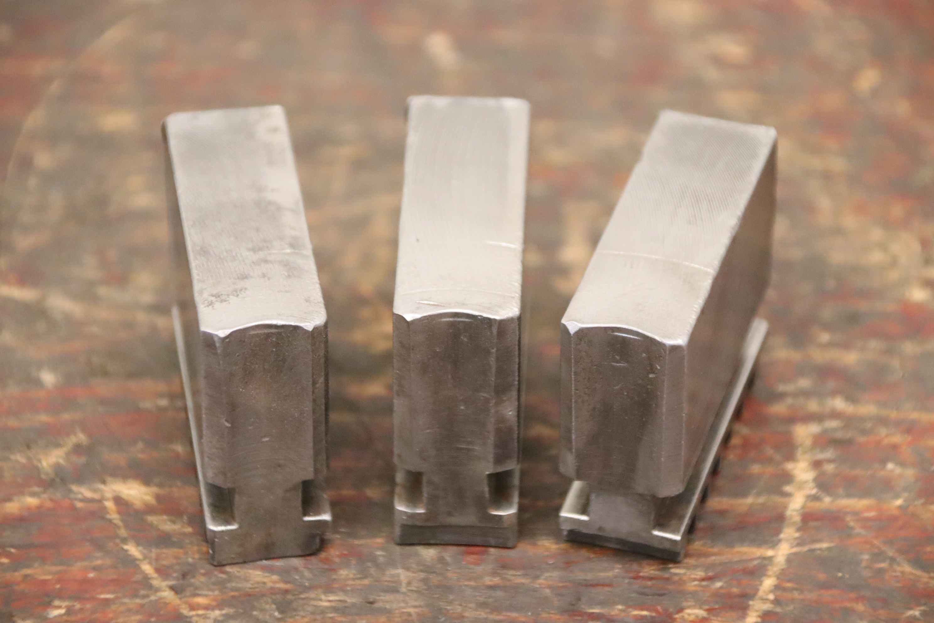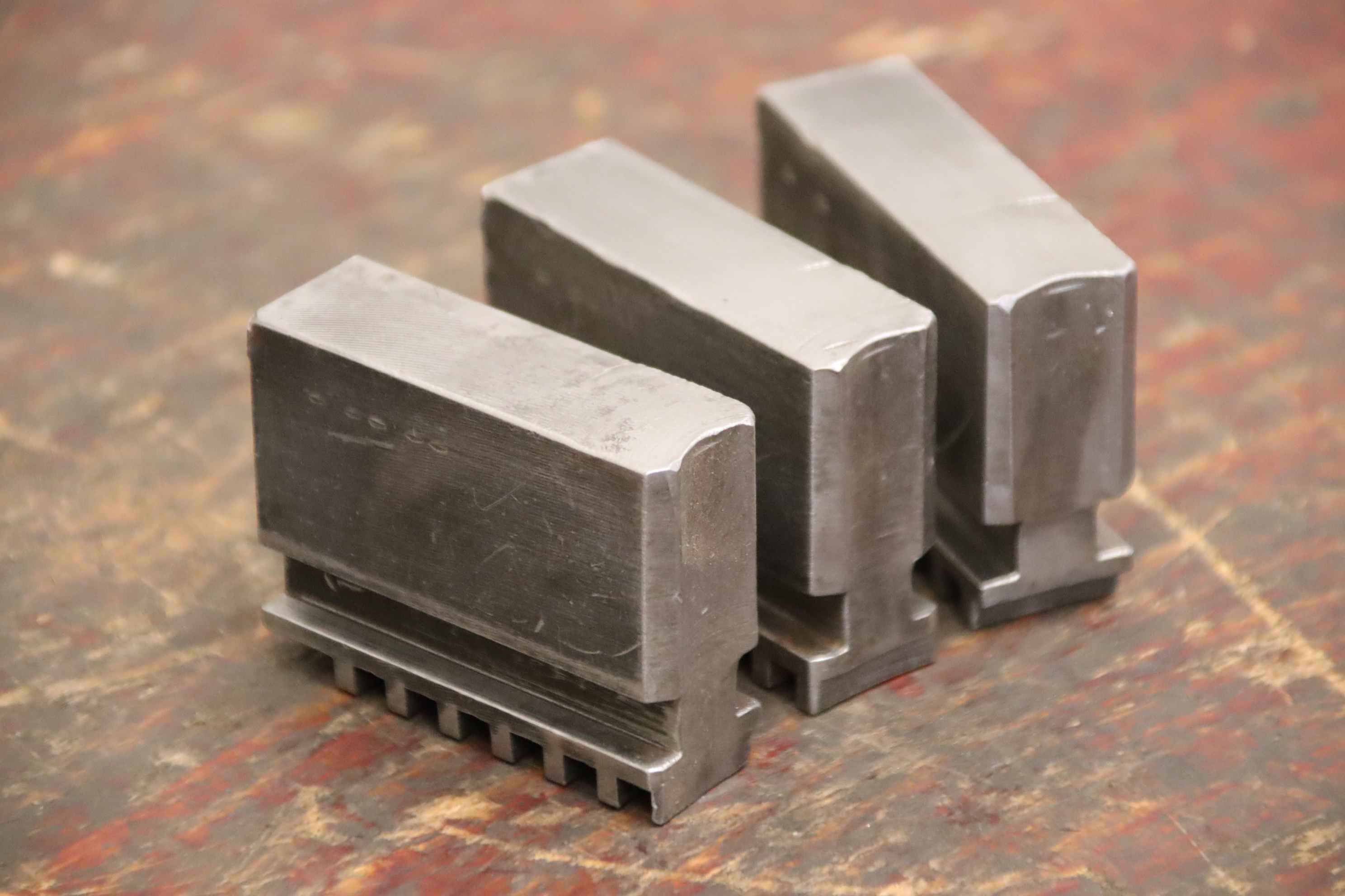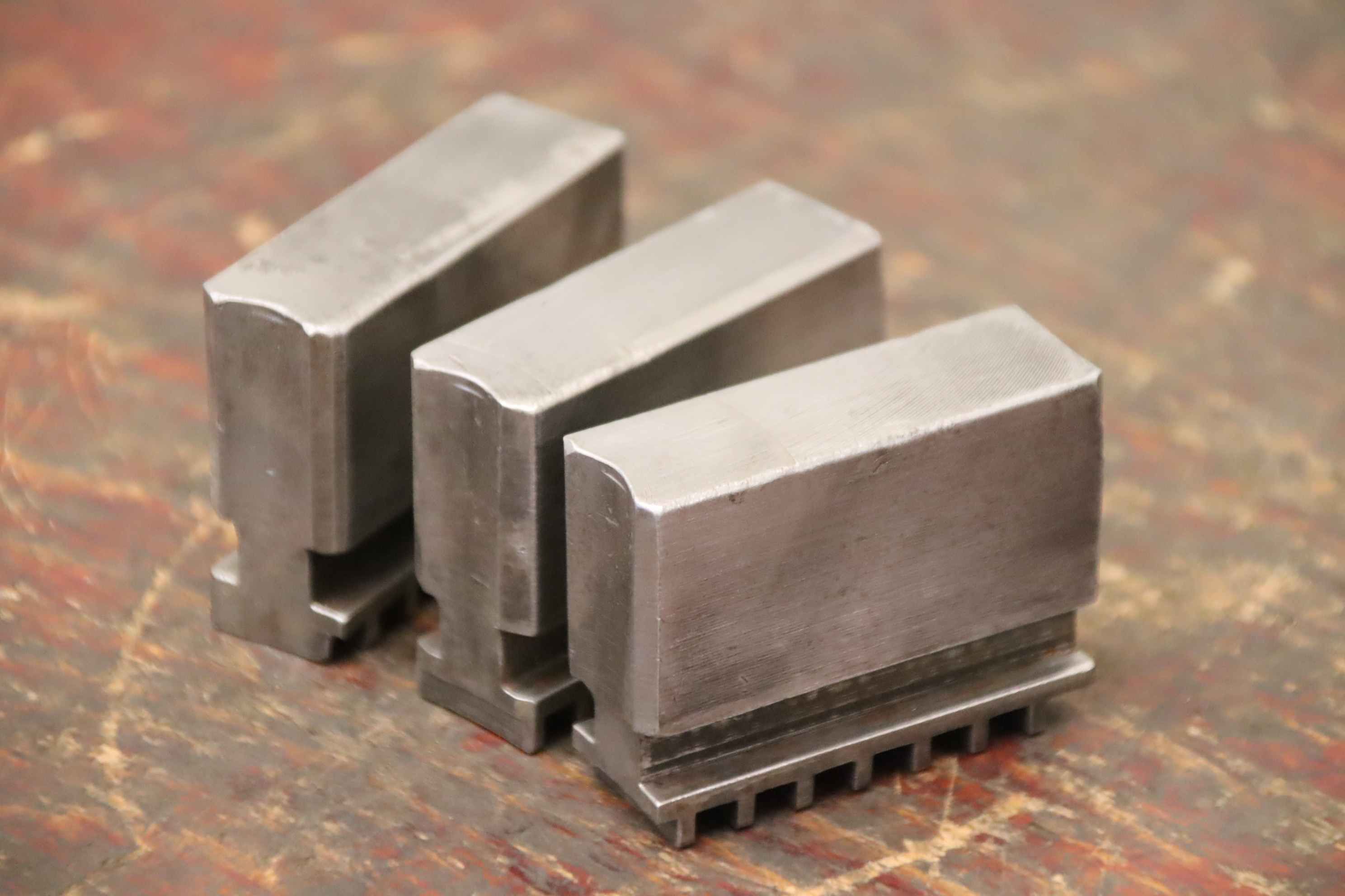 Interchangeable jaws, top jaws, three-jaw chucks, segment jaws, clamping jaws, step block jaws, step top jaws, block jaws, base jaws-Top jaws: Jaw set for three-jaw lathe chuck, soft-Jaw width: 20 mm-Dimensions: see photo technical drawing-Total dimensions: 62/60/H42 mm-Total weight: 1.1 kg