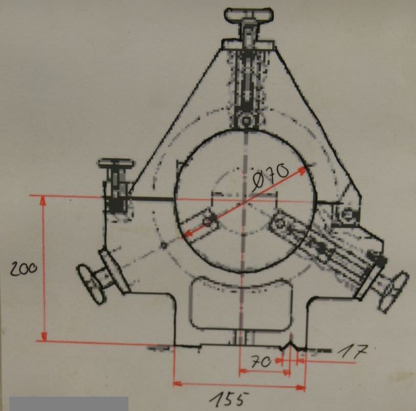 Bezel, setting stick, lynette -Max. passage: Ø 70 mm -Peak height: 200 mm -Drawing with the photos -Weight: 8 kg