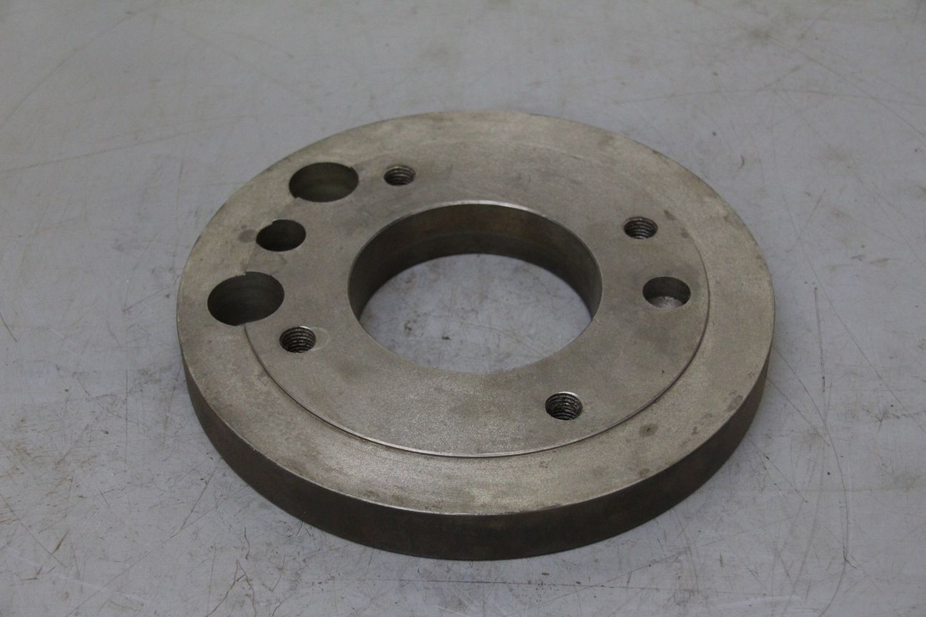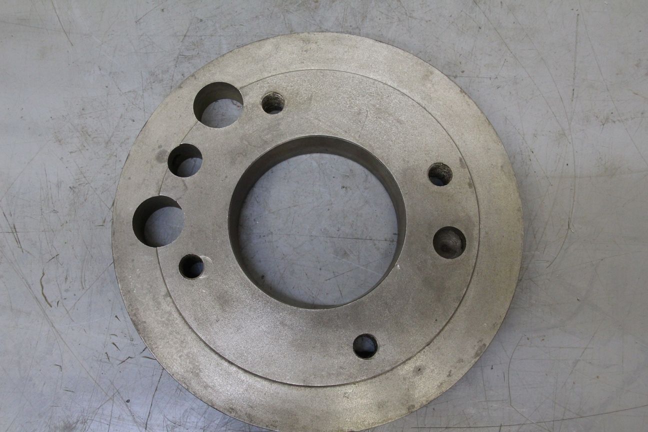 Chuck flange, flange mount, lathe chuck flange, drive flange -Feed flange for: drive heart, three-jaw chuck, four-jaw chuck, faceplate -Outer diameter: 185 mm -Short cones: 6 -Quantity: 1x disc available -Weight: 4 kg