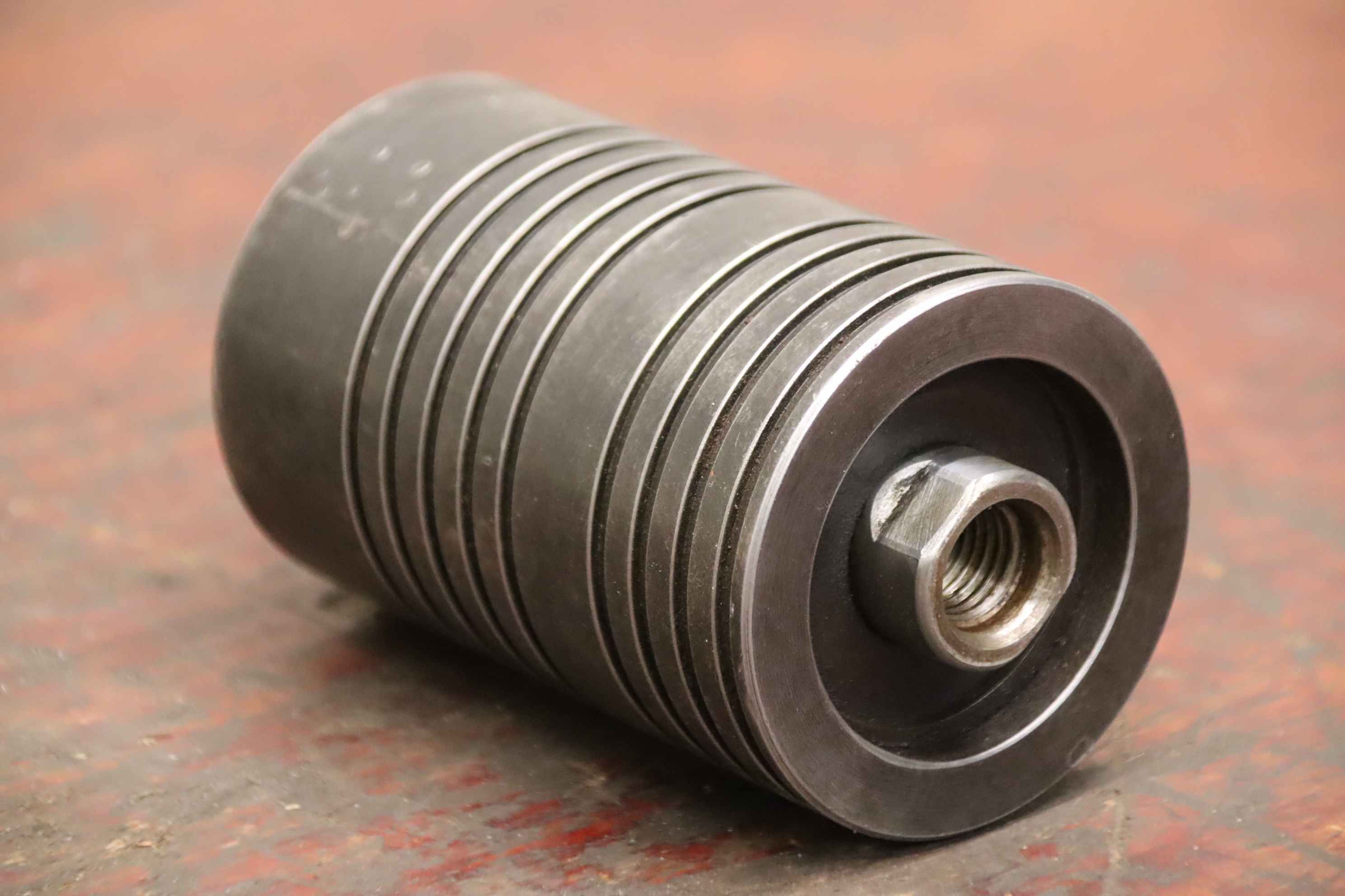 Clamping cylinder, hydraulic clamping cylinder, hydraulic clamp, pneumatic clamp, air cylinder, clamping cylinder for power chuck, hydraulic cylinder-Manufacturer: WV Lenze, clamping cylinder stroke 20 mm-Type: 40 TGL 30-7312-Shaft Ø 25 mm-Number: 8x clamping cylinders available-Price: per piece-Dimensions: Ø 70 x 133 mm-Weight: 2.8 kg/piece