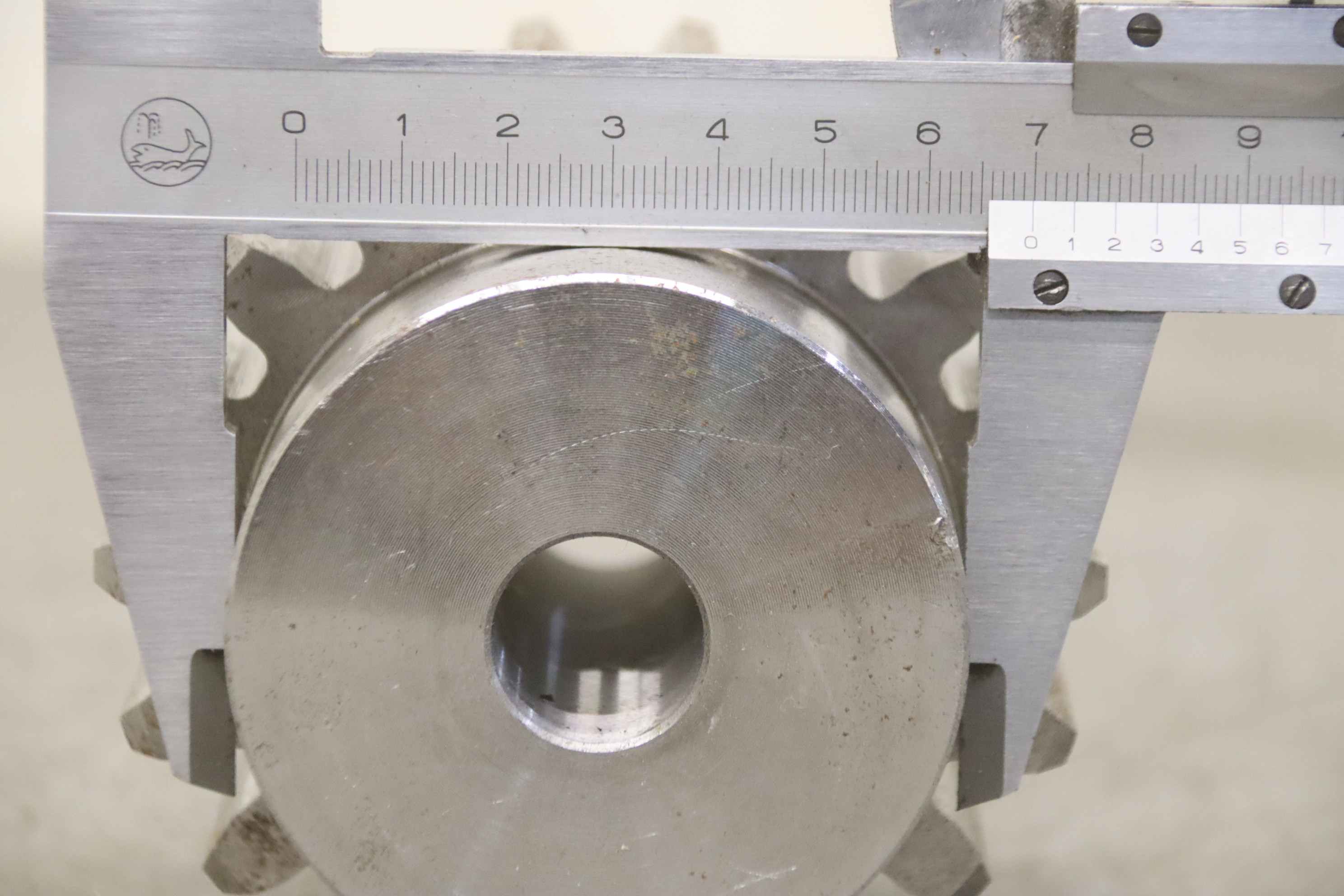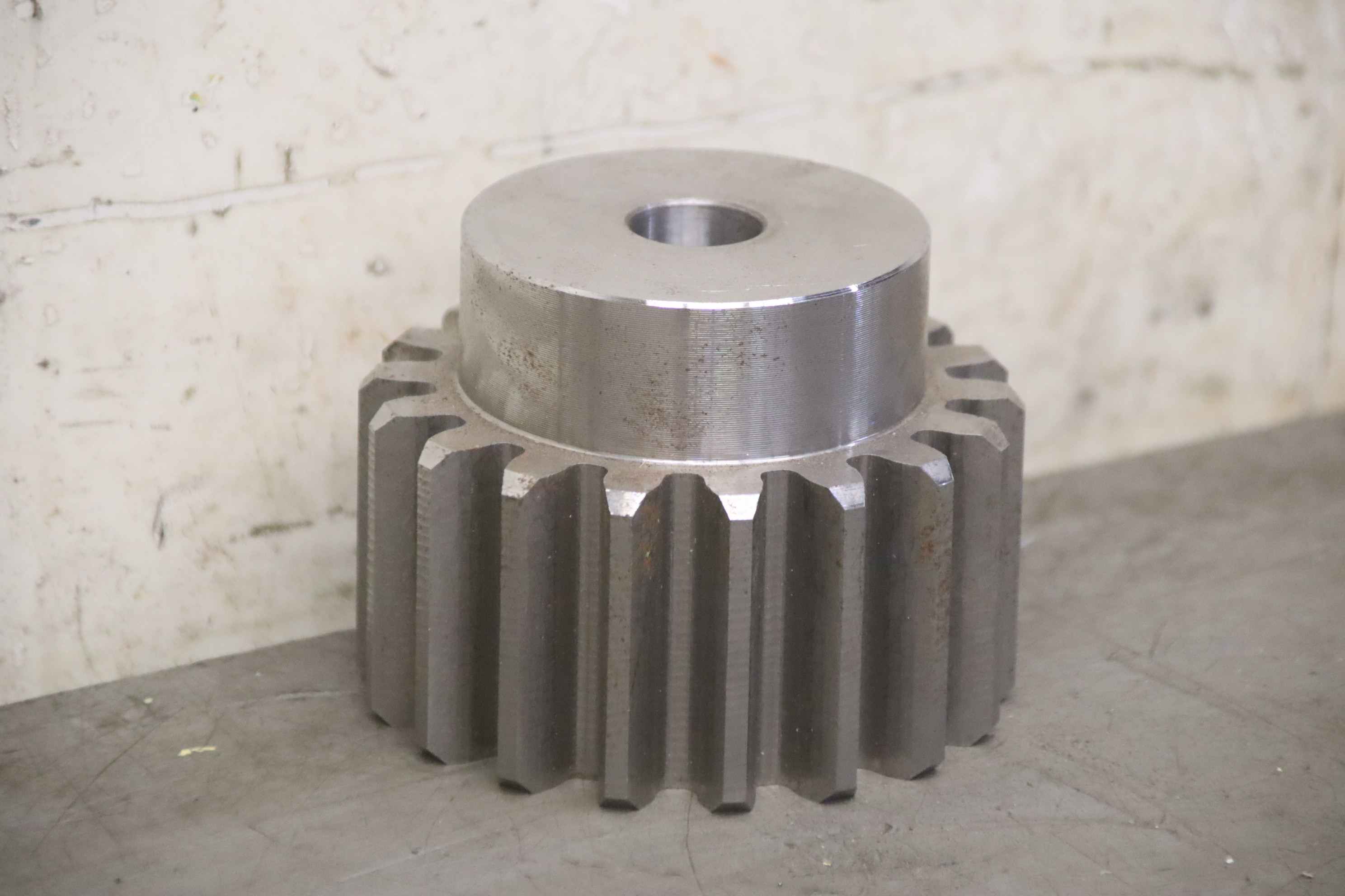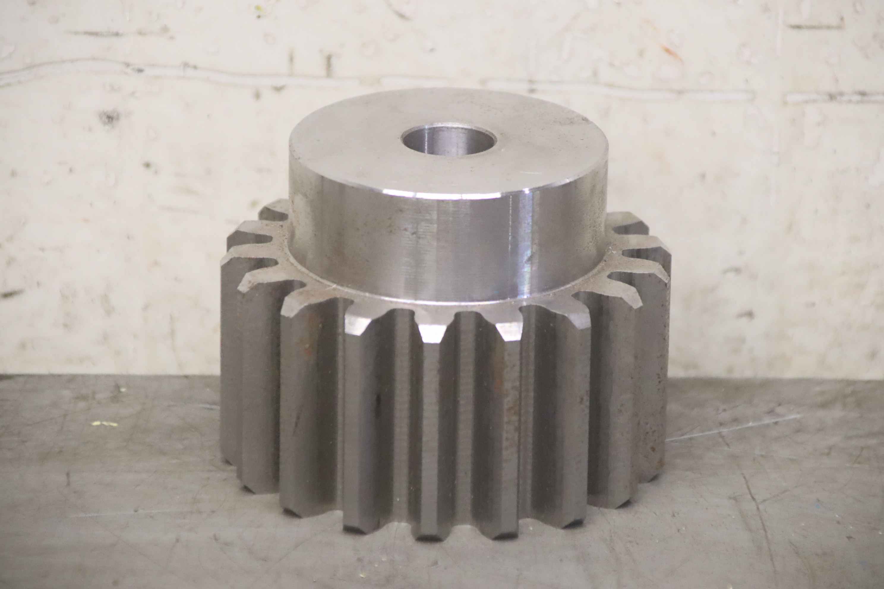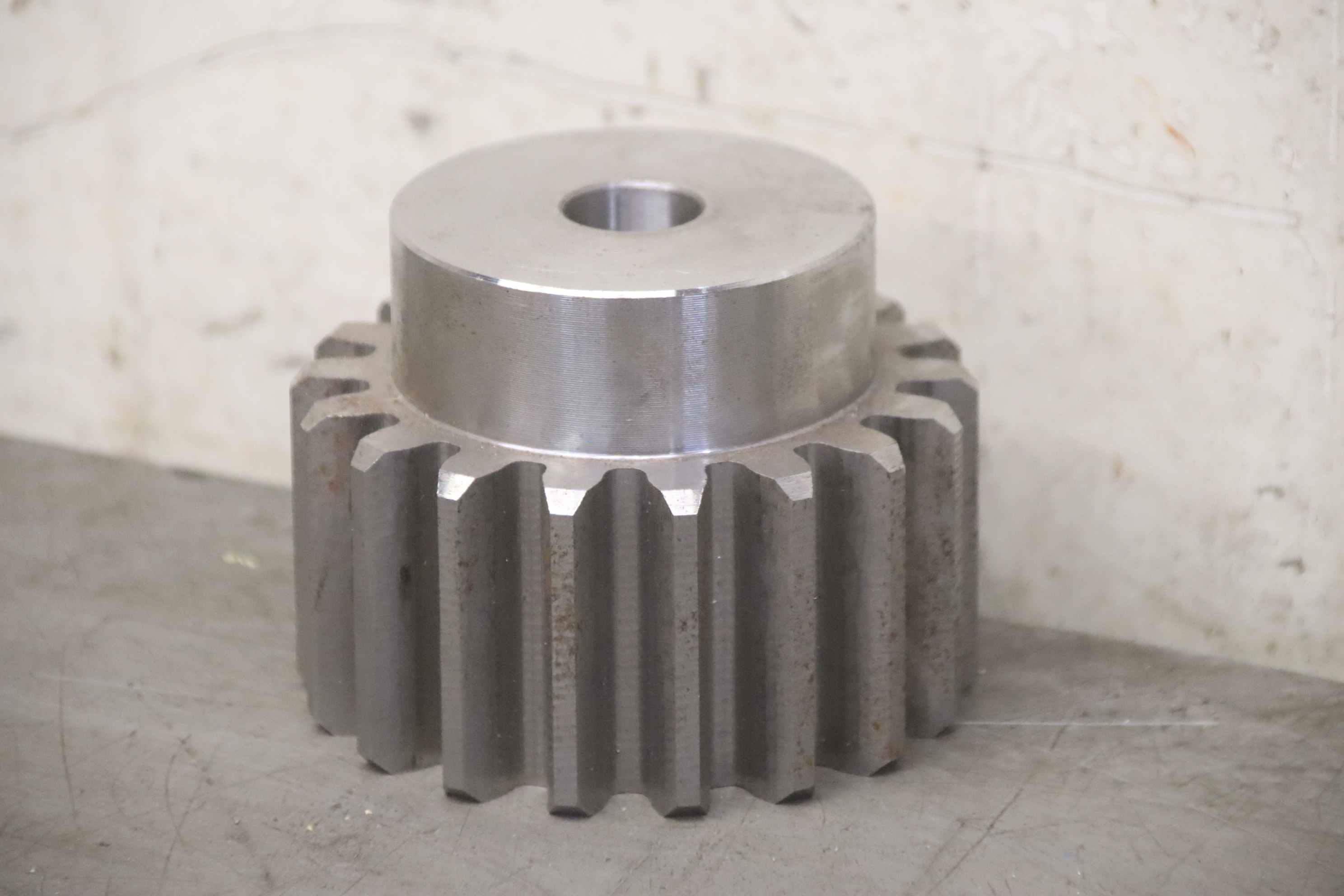 Gear, gears, spur gear, spur gear-Manufacturer: PTI, gear, spur gear module 5 18 teeth-Type: M5 Z18-Shaft holder: I pilot hole Ø 20 mm-Tooth width: 50 mm-Quantity: 2x gear available-Price per piece-Total dimensions: Ø 100 x 75 mm-Weight: 3.0 kg/pc.