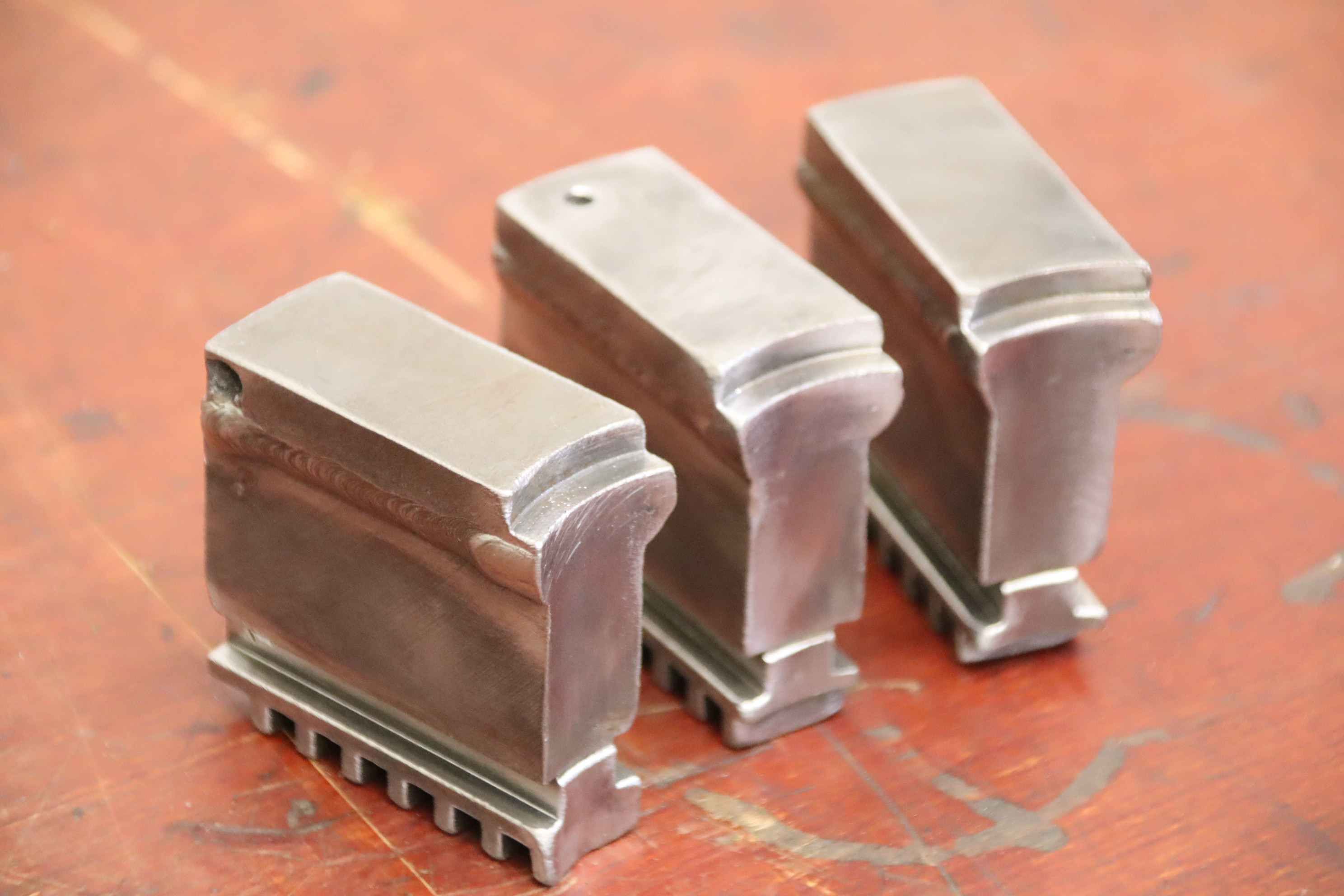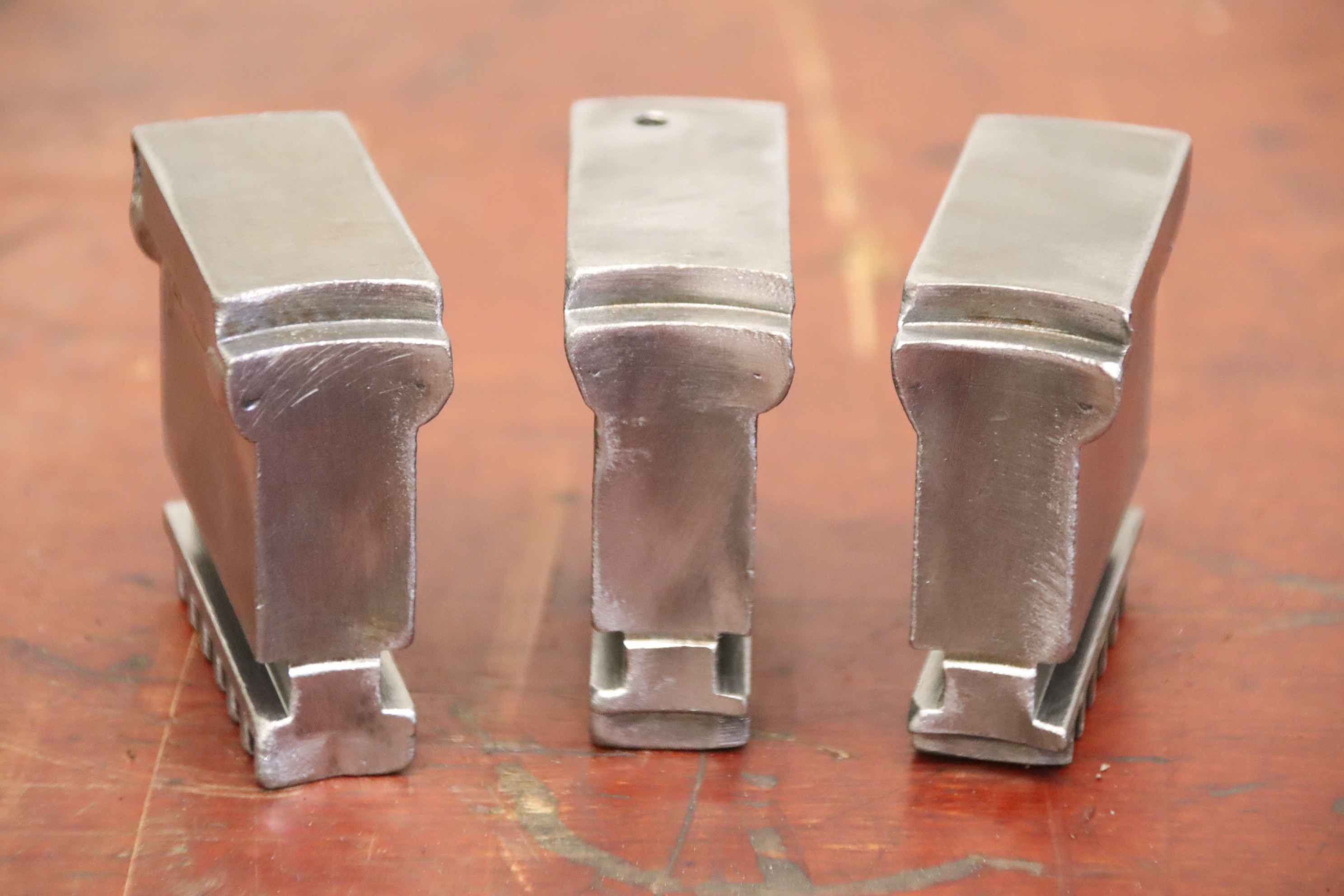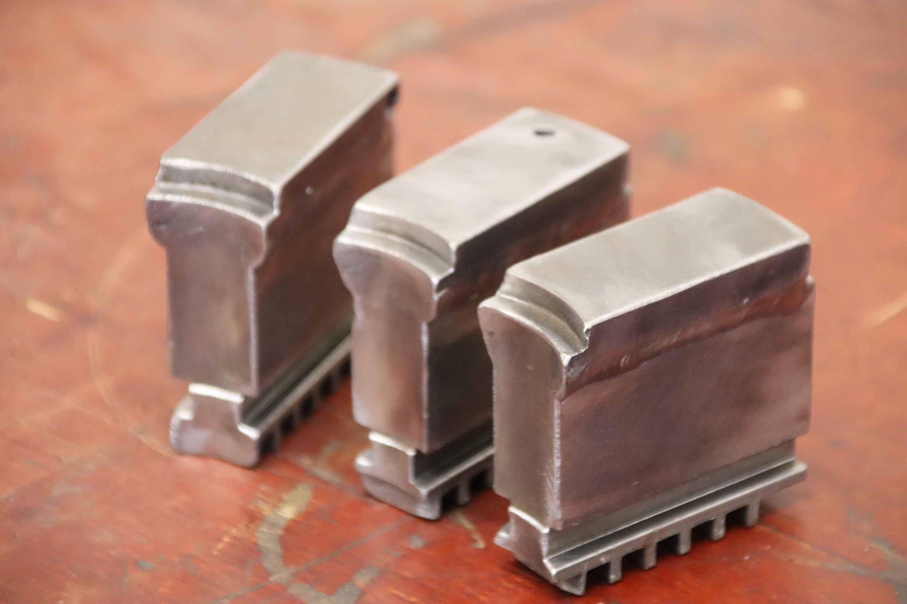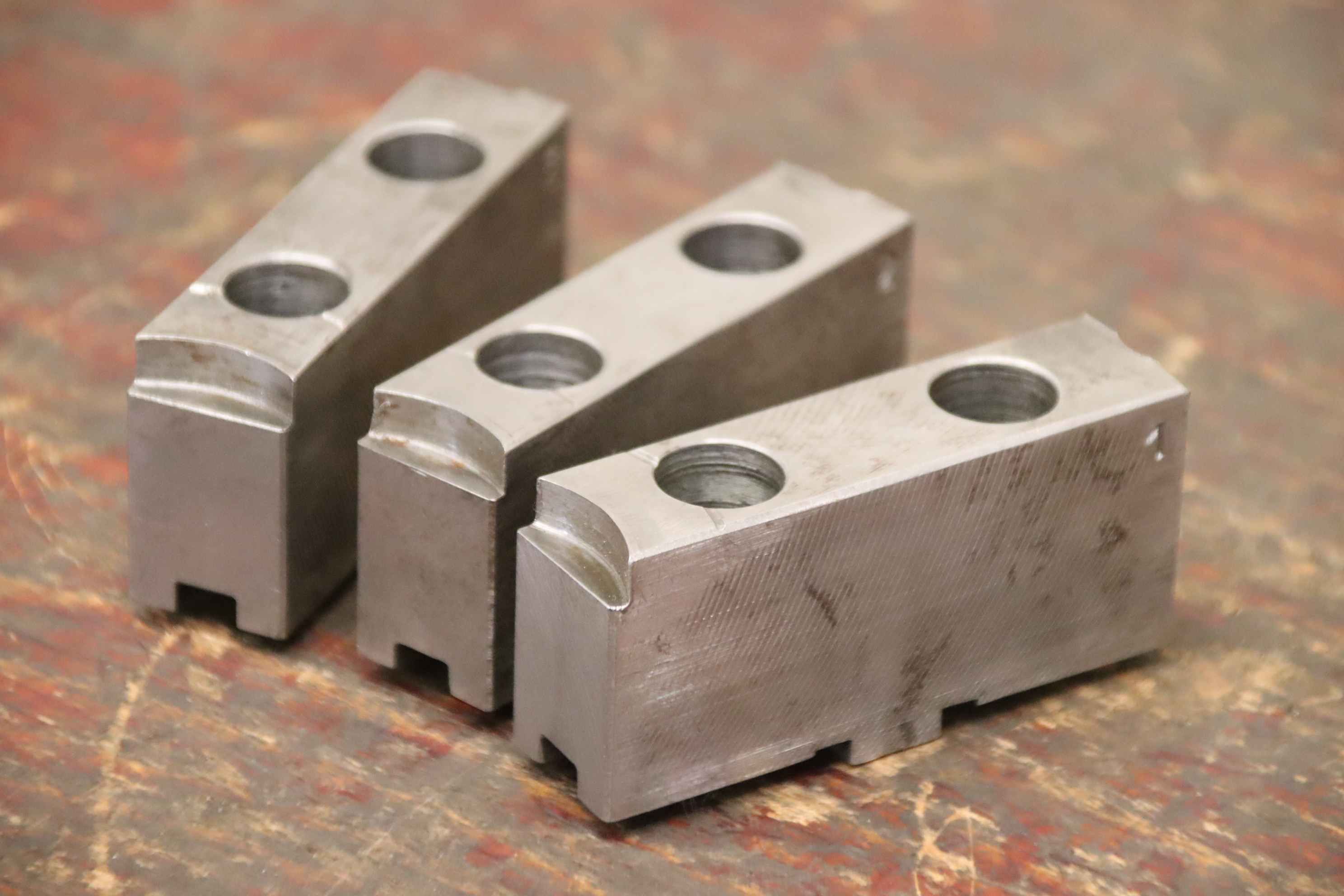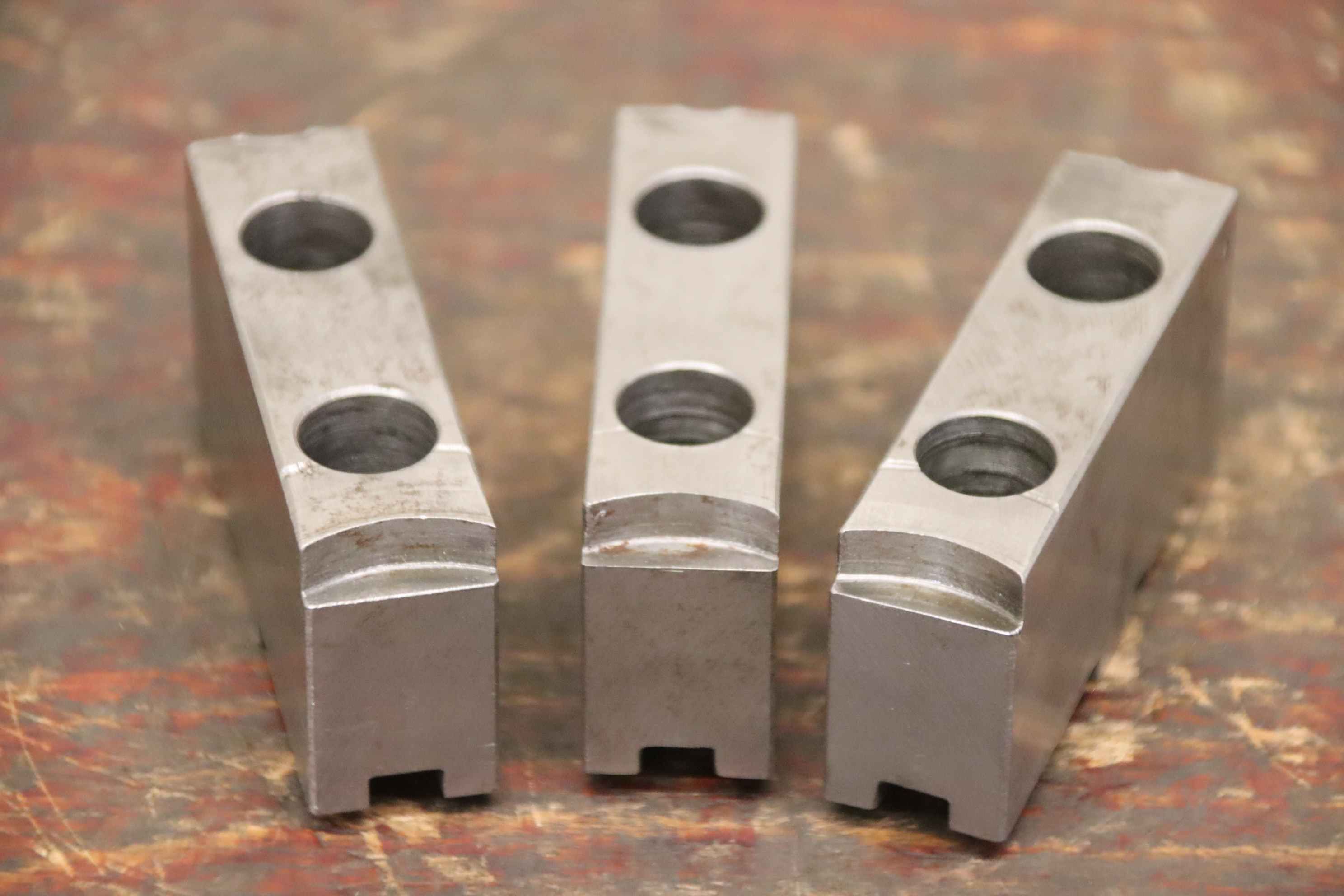 Interchangeable jaws, top jaws, three-jaw chucks, segment jaws, clamping jaws, stepped block jaws, stepped top jaws, block jaws, base jaws, 4-jaw set -Top jaws: Rotary jaw set for power chucks, 4 sets -Dimensions: see photo technical drawing -Price/Fee: complete -Overall dimensions: 330/230/H105 mm -Total weight: 27.5 kg