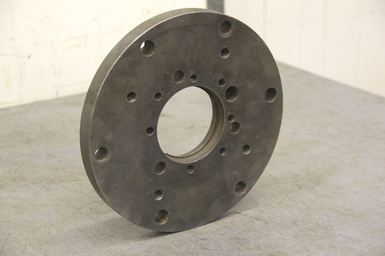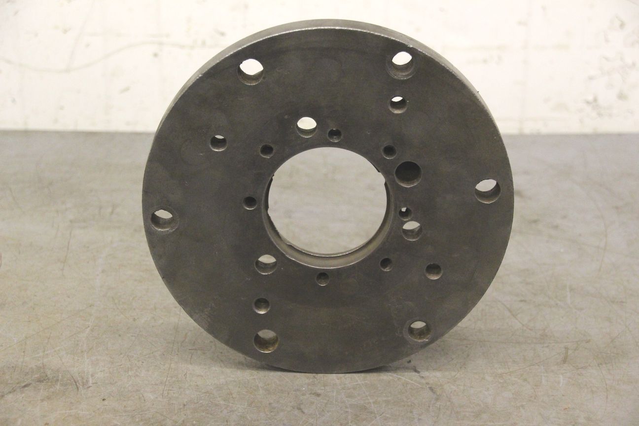 Chuck flange, flange mount, lathe chuck flange, driving flange-Chuck flange for: three-jaw chuck, four-jaw chuck, face plate-Outer diameter: 250 mm-Hole circle: Ø 225/Ø 13 mm-Dimension: Ø 250/H25 mm-Weight: 7.1 kg