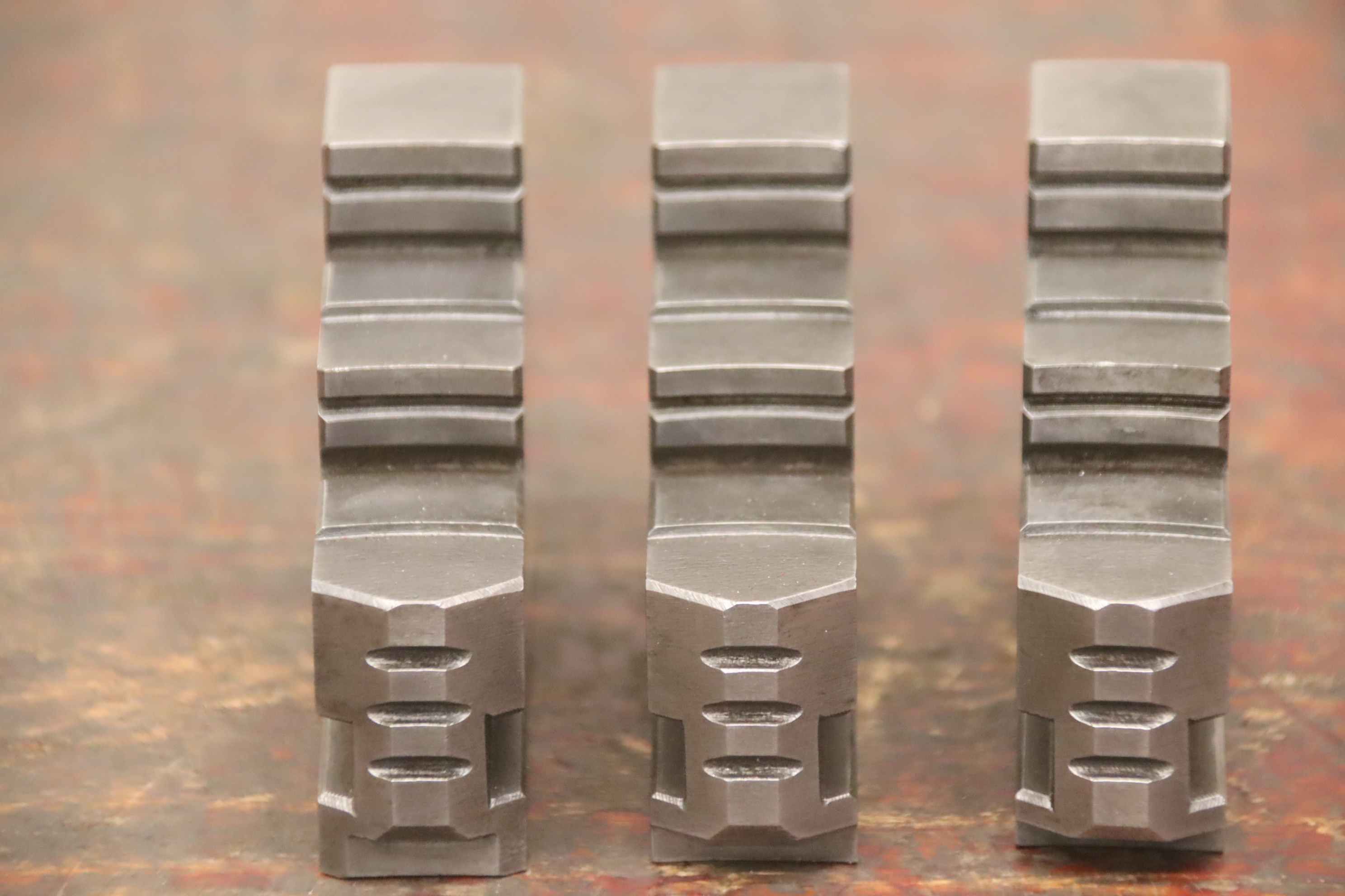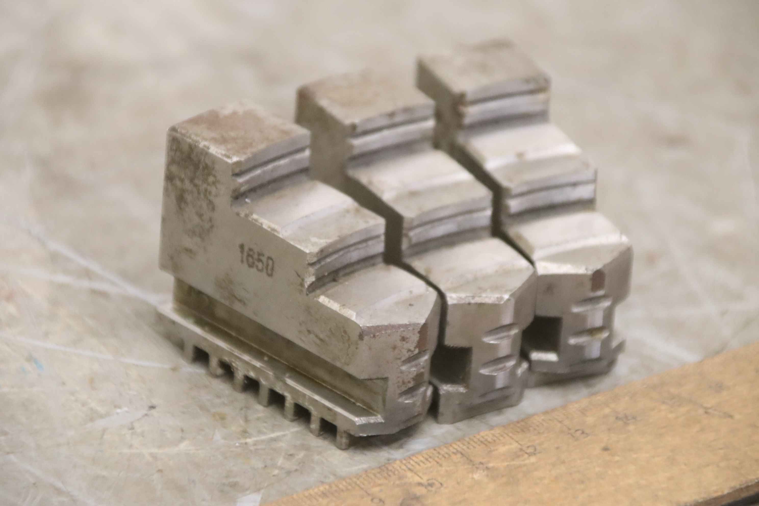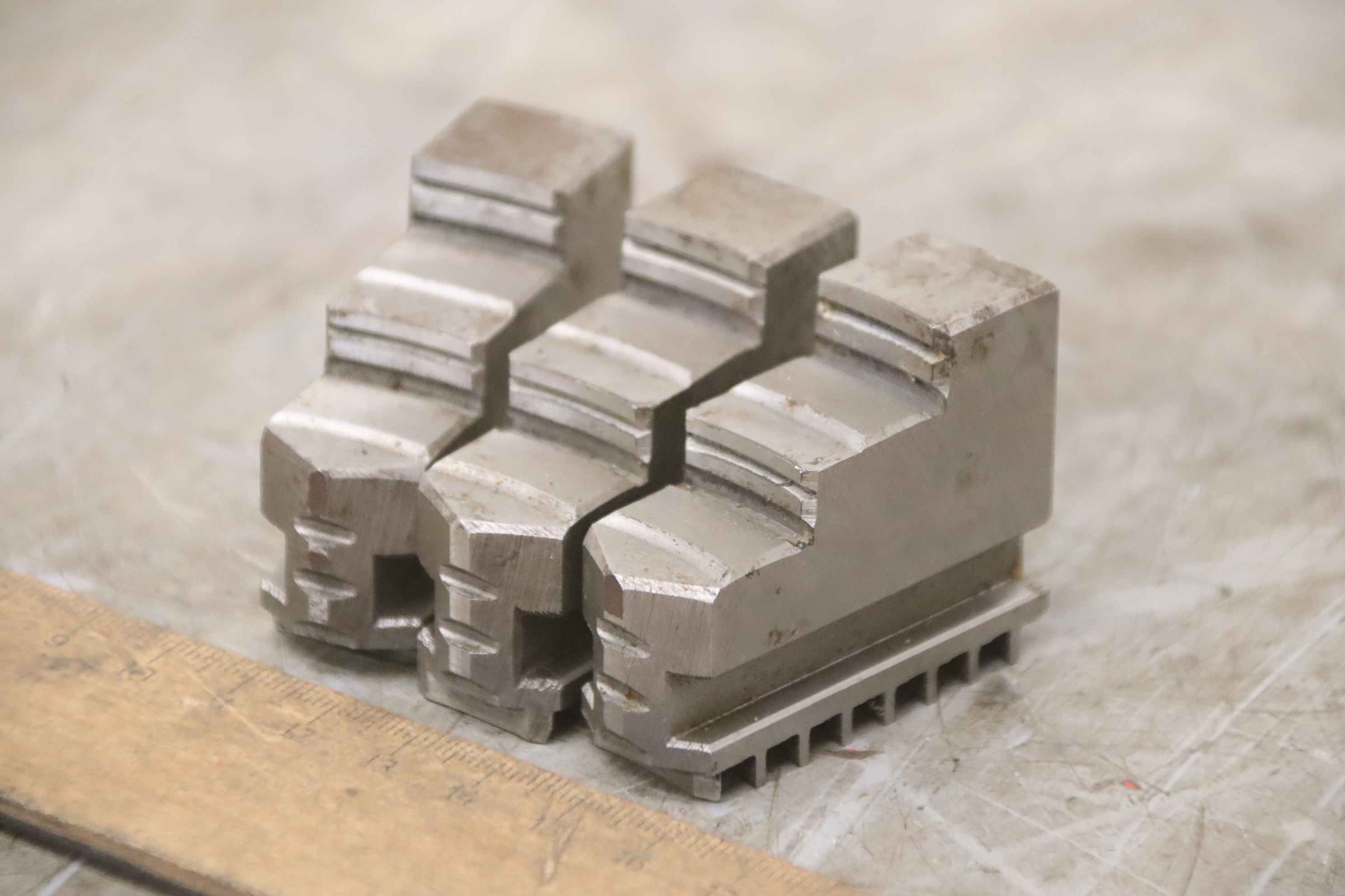 Interchangeable jaws, top jaws, three-jaw chucks, segment jaws, clamping jaws, stepped block jaws, stepped top jaws, block jaws, base jaws -Top jaws: jaw set for three-jaw lathe chuck -Jaw width: 24 mm -Dimensions: see photo technical drawing -Dimensions total: 90/72/H67 mm -Total weight: 2.2 kg