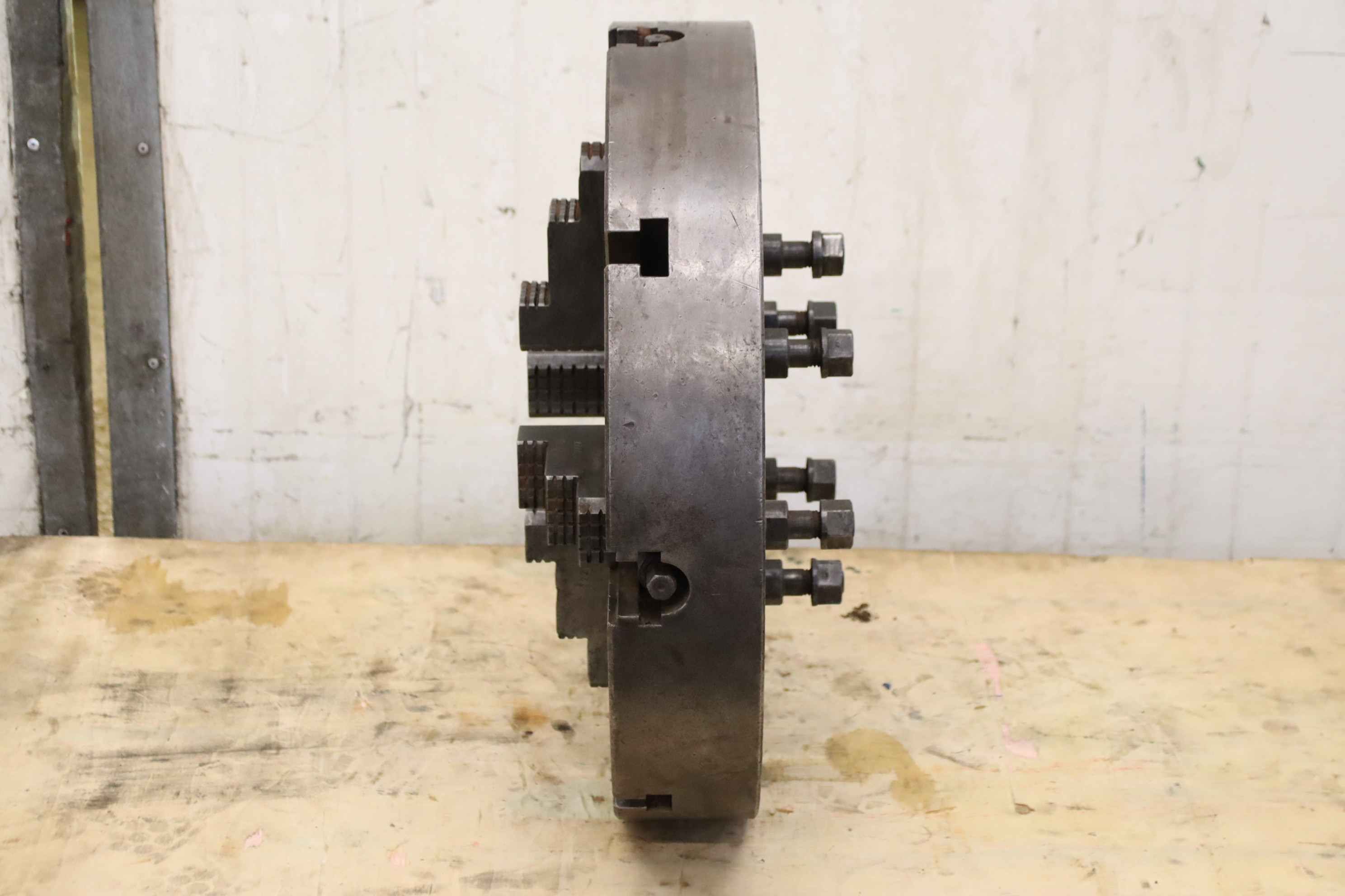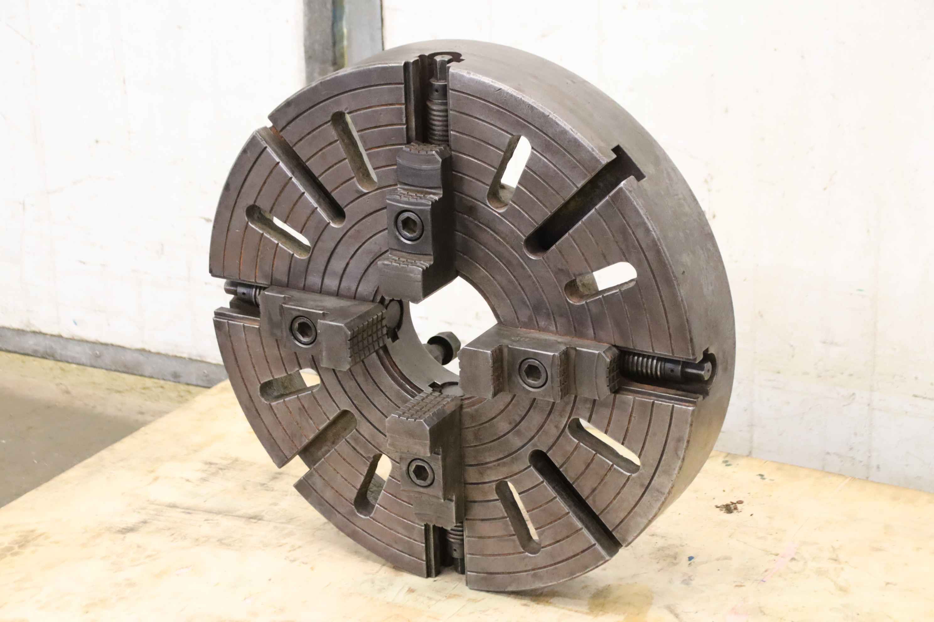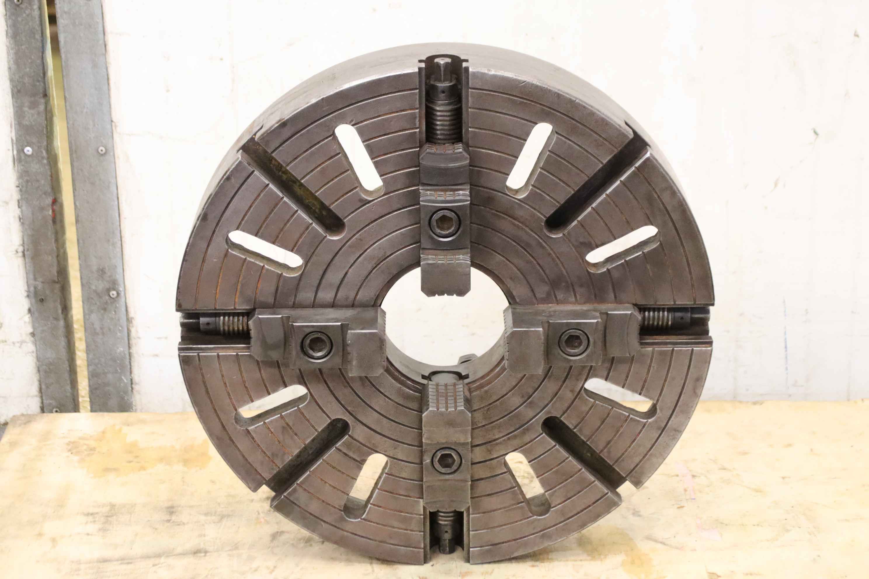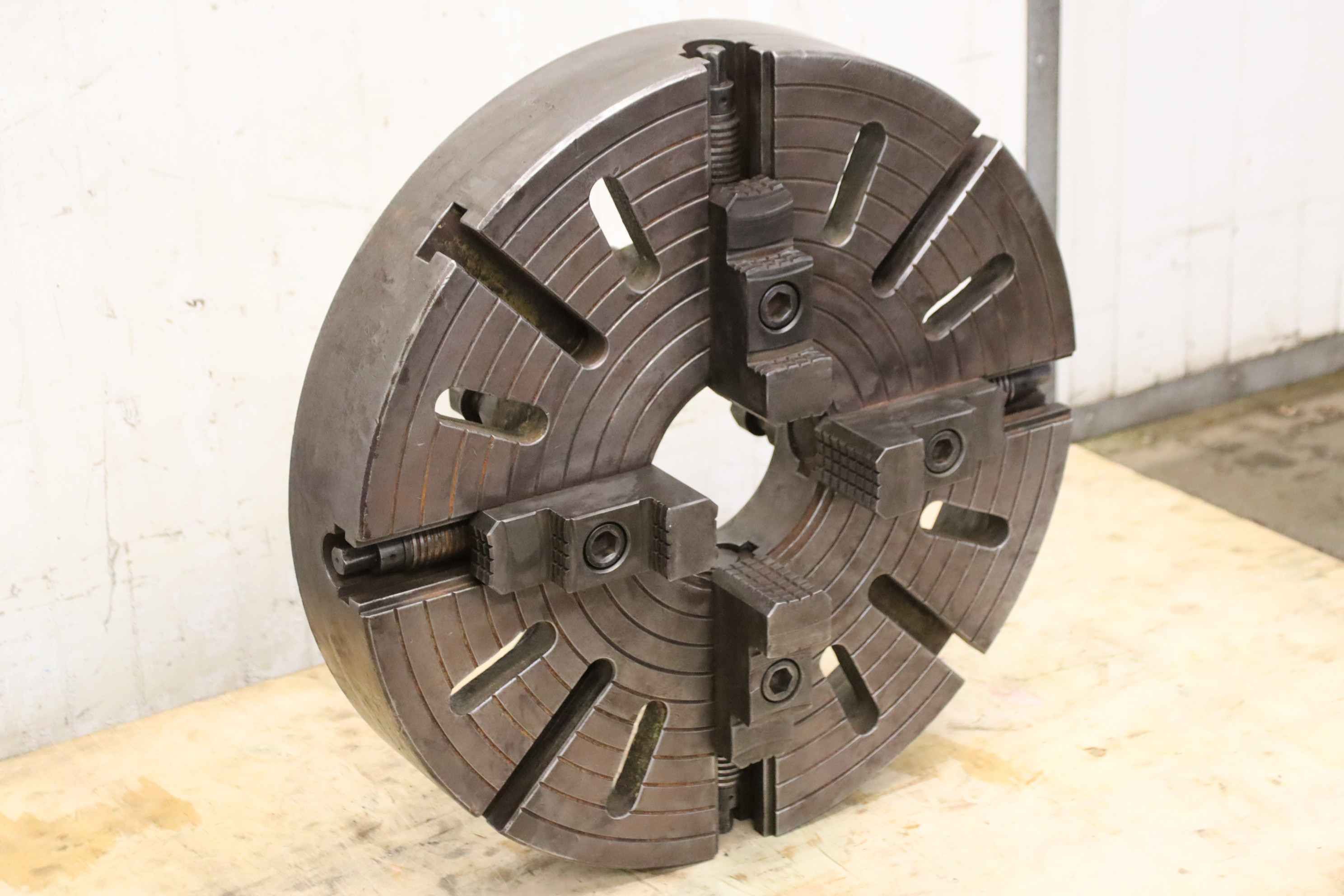 Faceplate, faceplate chuck, four-jaw chuck, facing chuck-Face plate: Chuck size Ø 560 mm-Bolt circle: Ø 235 mm-Groove width: 22 mm-Through hole: Ø 140 mm-Intake: short taper 11-Weight: 109 kg