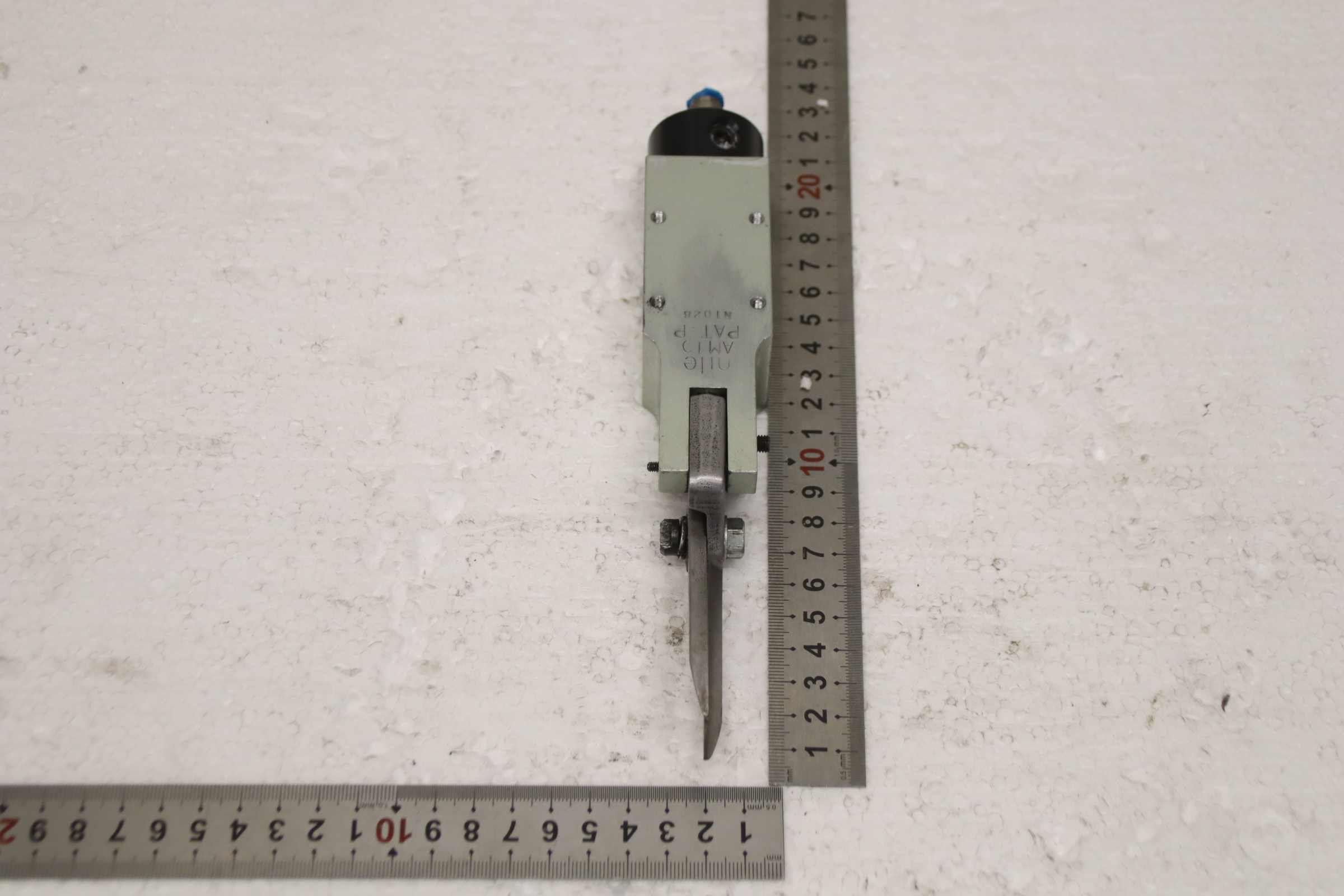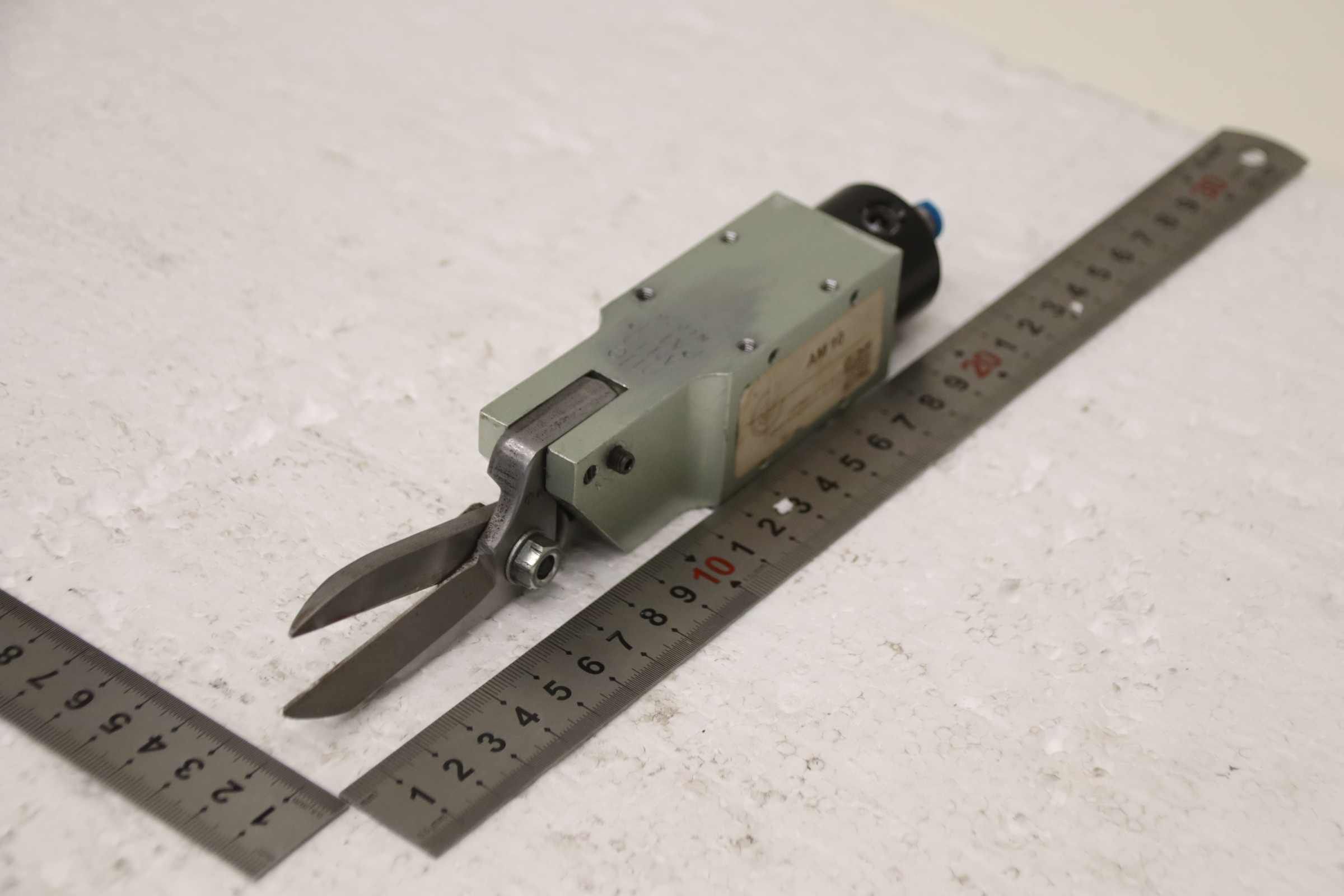 Scissors, pneumatic scissors, air cutters, wire cutting scissors -Manufacturer: nile, pneumatic wire cutting shears for face mask machines -Type: AM10 -Cutting length: approx. 46 mm, see photo -Quantity: 8 pairs of scissors available -Price: per piece -Overall dimensions: 220/35/H35 mm -Weight: 0.4 kg/pc.