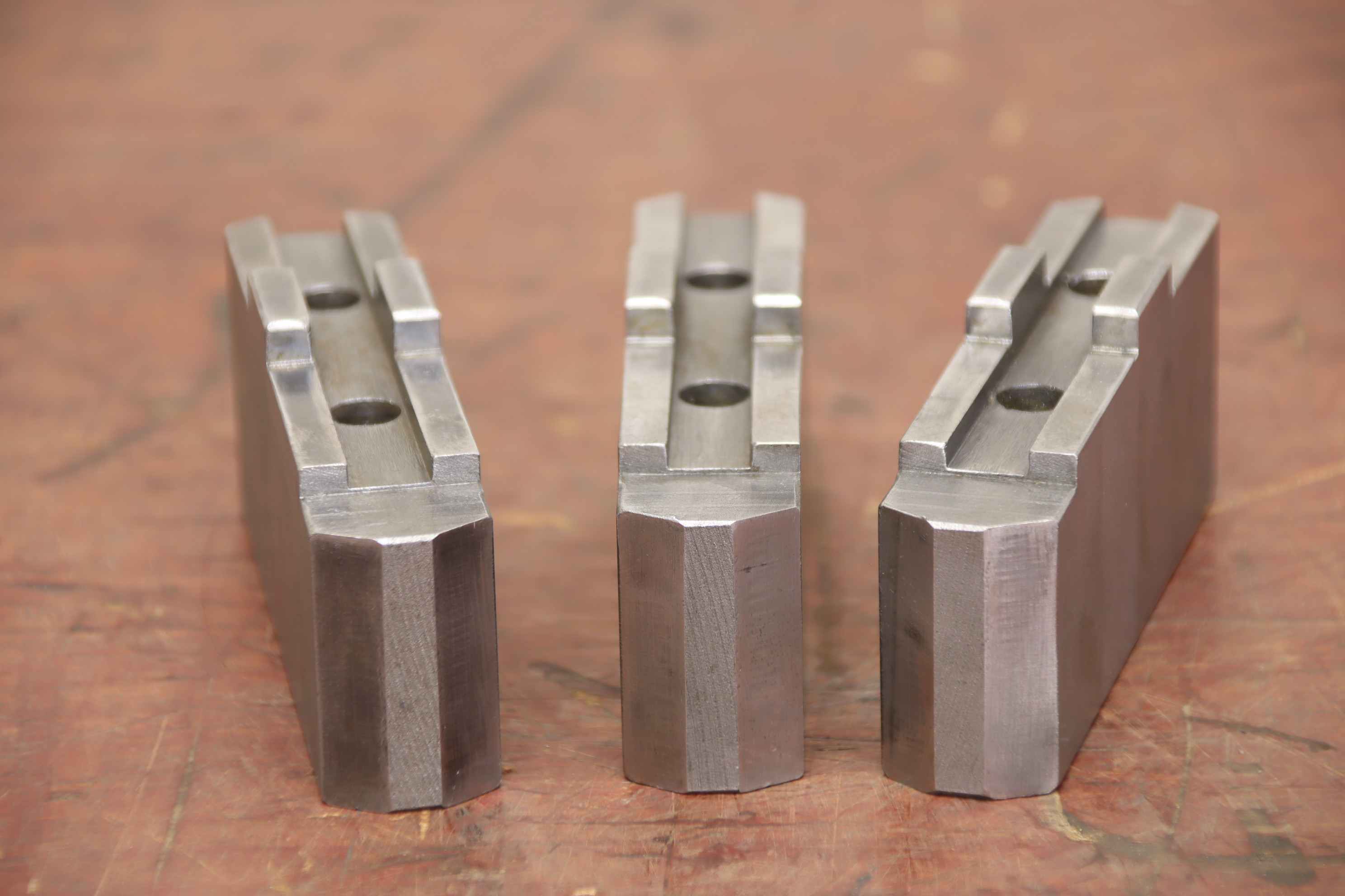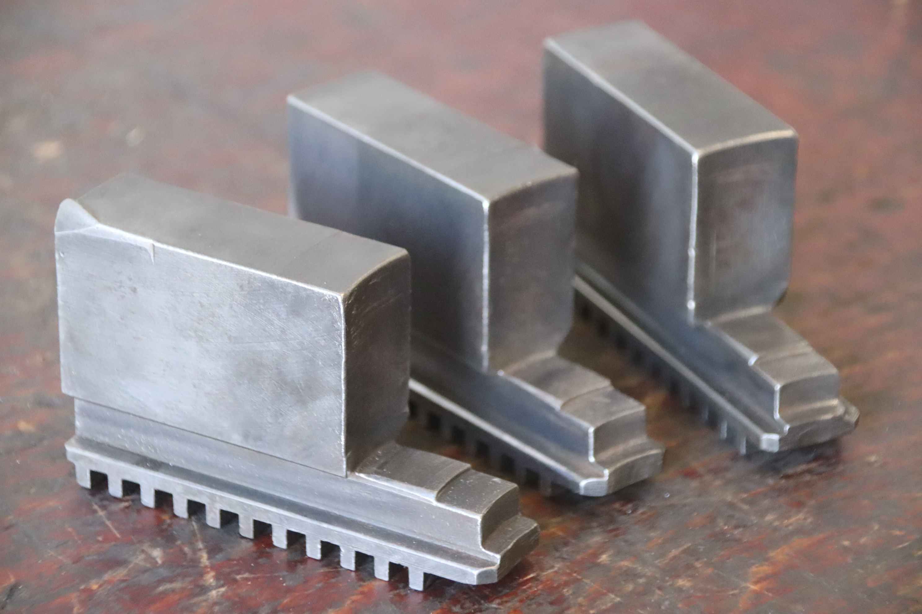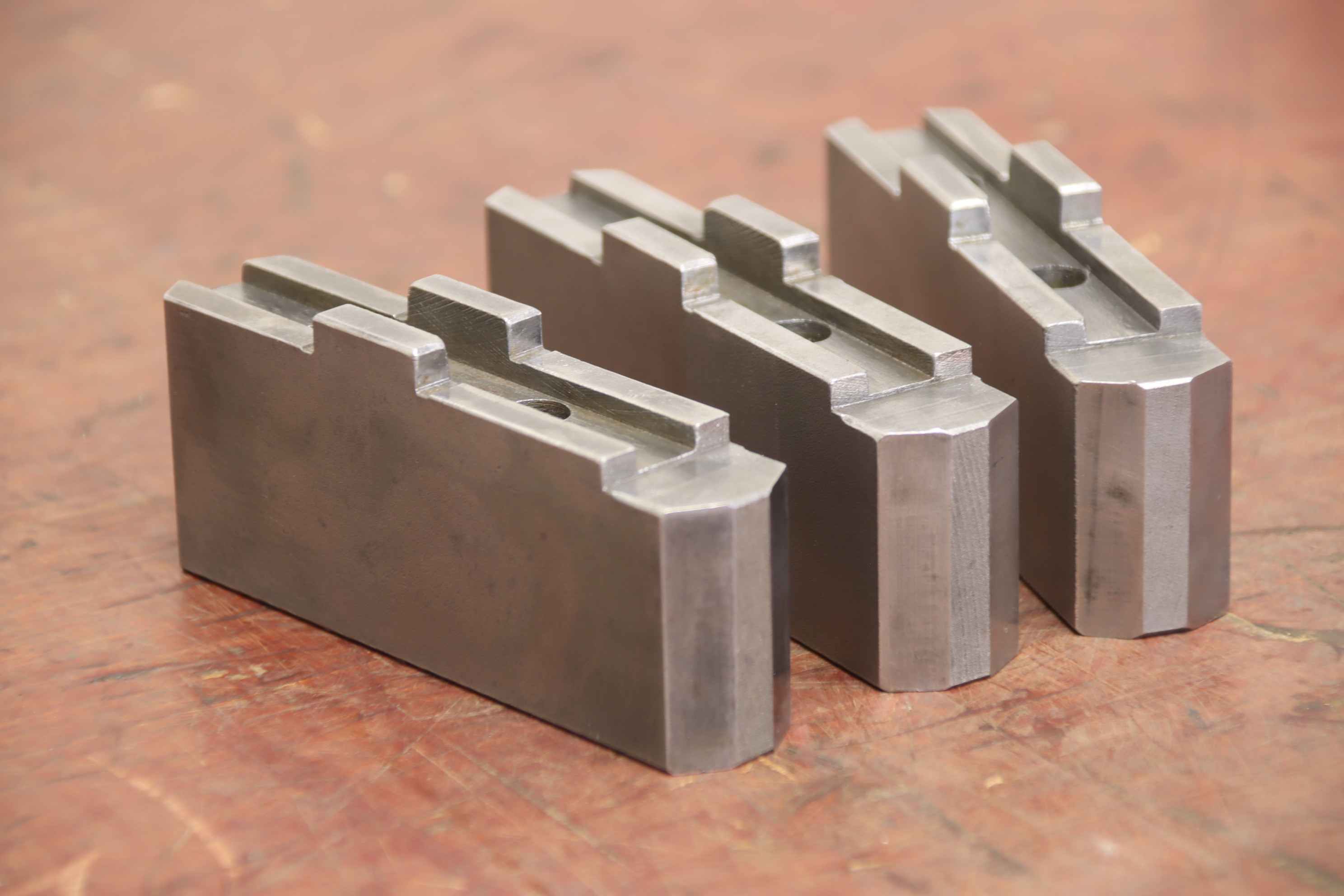Interchangeable jaws, top jaws, three-jaw chucks, clamping jaws, step block jaws-Top jaws: soft clamping jaws 1 set = 3 pieces-Hole spacing: 40 mm-Width: 30 mm-Dimensions: 120/90/H80 mm-Weight: 3.4 kg