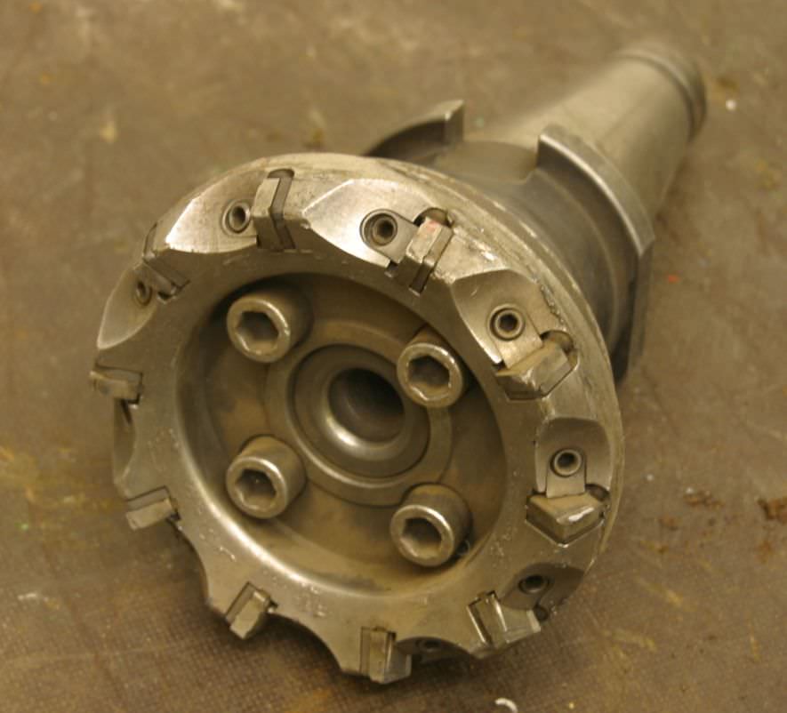 Cutter head, milling chuck, carbide cutter, indexable insert cutter -Diameter: 130 mm -Number of teeth: 10 -Indexable inserts: Carbide -Recording: SK50 -Weight: 10 kg