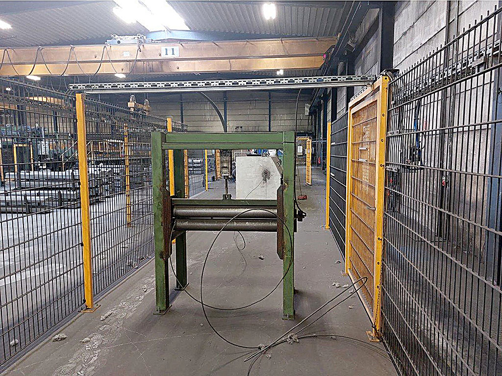 ZB çerçevelerinin üretimi için yassı çelik bükme makinesi mevcuttur. Pnömatik basınç: 8bar, hidrolik basınç: 100bar, ağırlık: yaklaşık 5000kg. Yerinde inceleme mümkündür.