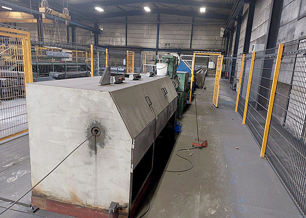 Offered is a straightening machine with cold rolling unit. 2-fold wire coil payoff, installed are: GSG COMBI rolling stand year 1994, GSG KWG.3 rolling stand year 1991, roller driver GSG ERT year 2007, straightening and cutting unit Wafios RBK51M year 2000, wire drawing unit 1 pass, wire diameter 6.0mm-12.0mm, max. speed 120m/min, min. cutting length 1600mm, cutting rate up to 80cuts/min, inlet strength approx. 50daN/mm². Package dimensions for finished material up to max. 14000mm length, up to 1000 bars per bundle. Length of the system approx. 5000mm. The system is offered without safety fence. Viewing possible by arrangement.