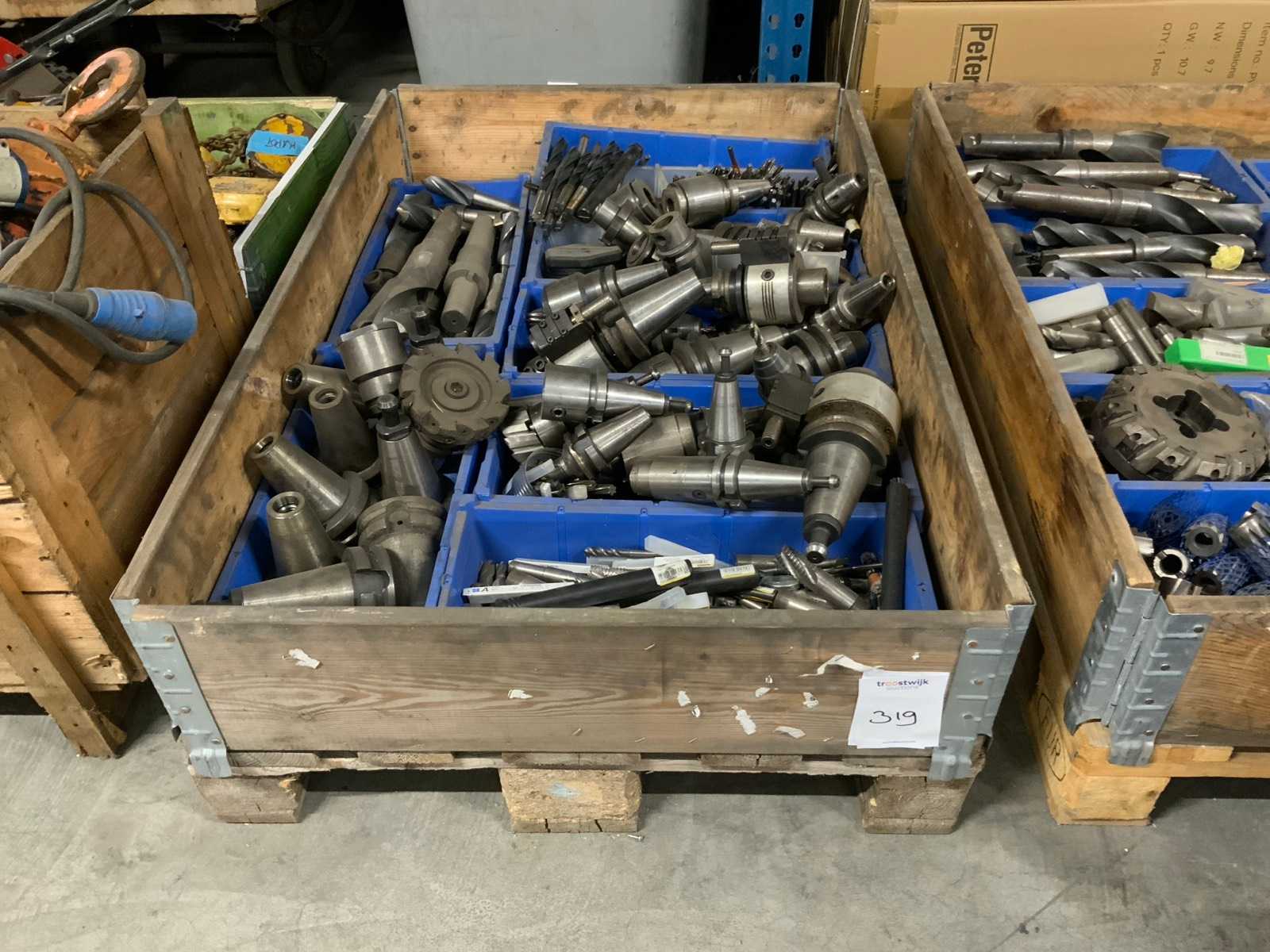 Various milling cutters; face milling; tool holders; various reamers; including plastic crates; without pallet box;