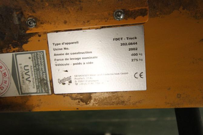 1 GENKINGER armürlü değiştirme arabası tipi FDCT, yıl 2002 taşıma kapasitesi 400 Kg