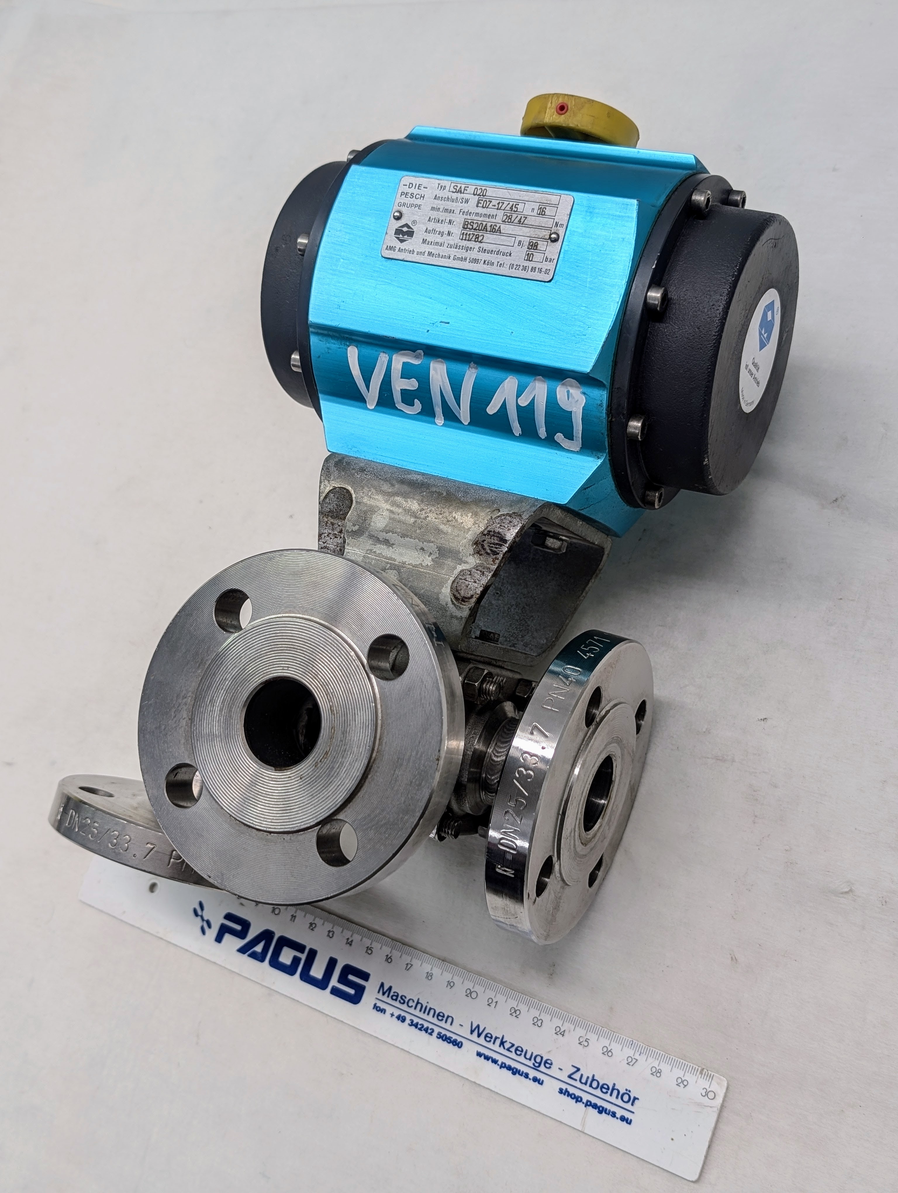 Pnömatik valf aktüatörlü kapatma vanasıGSR VENTILTECHNIKD2205/0404/7005C706917kontrol basıncı maks 5 barPN 16DN 40Yeni !Boyutlar: 300 x 200 x 150 mm