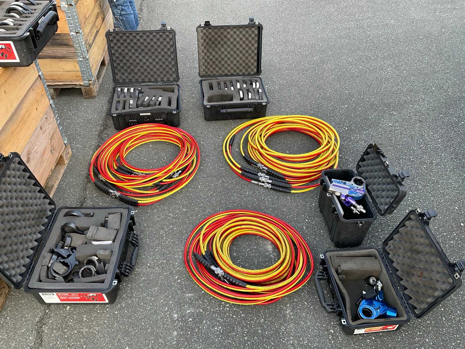 Consisting of 9 cases with Hytorc tools and hose sets, including: pallet