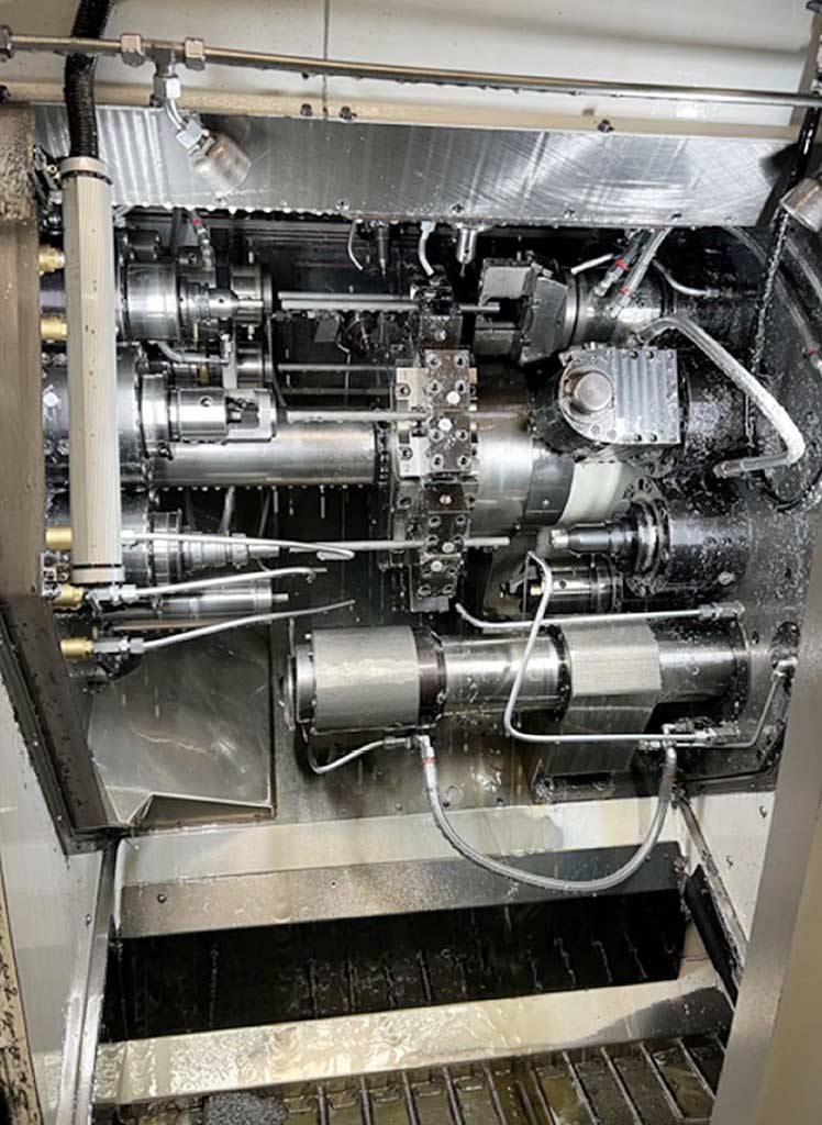 Two similar CNC rotary transfer machines Winema are available. 1) Winema RV20 Evolution Flexmaster, year of manufacture: 2016, stations: 8, cycle time: 12s, machining scope: turning/drilling/milling/grooving/slot machining, collet feed stroke: 400mm, bar diameter: 25mm, length: 4200mm, coolant pressure: 30bar, production output: approx. 2100parts/8h, control: Bosch MTX CNC. Including material handling, Knoll turbo filter system, cooling unit, discharge conveyor, oil mist extraction and bar loading magazine. 2) Winema RV20 Evolution Flexmaster, year of manufacture: 2015, stations: 8, cycle time: 12s, machining scope: turning/drilling/milling/grooving/slot machining, collet feed stroke: 400mm, bar diameter: 25mm, length: 4200mm, coolant pressure: 30bar, production output: approx. 2100parts/8h, control: Bosch MTX CNC (Sinumerik). Including material handling, Knoll turbo filter system, cooli ...