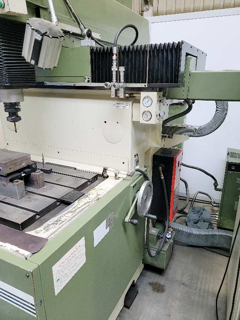 Travel X/Y/Z: 600mm/400mm/250mm, electrode-table distance range: 420mm-670mm, table dimensions X/Y: 750mm/550mm, max. workpiece weight: 1000kg, workpiece tank internal dimensions X/Y/Z: 900mm/630mm/400mm, workpiece tank volume: 200l, rapid traverse: 1200mm/min, min. input increment: 0.001mm, electrode connection plate: 220mm, max. electrode weight: 75kg. Machine dimensions X/Y/Z: approx. 1850mm/2150mm/2550mm, weight: approx. 4100kg. Including cooling unit, fluid supply unit, automatic fire extinguisher and two power supply units. Documentation available. An on-site inspection is possible.