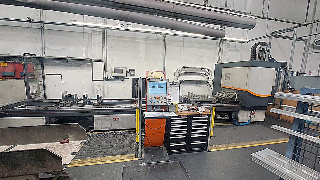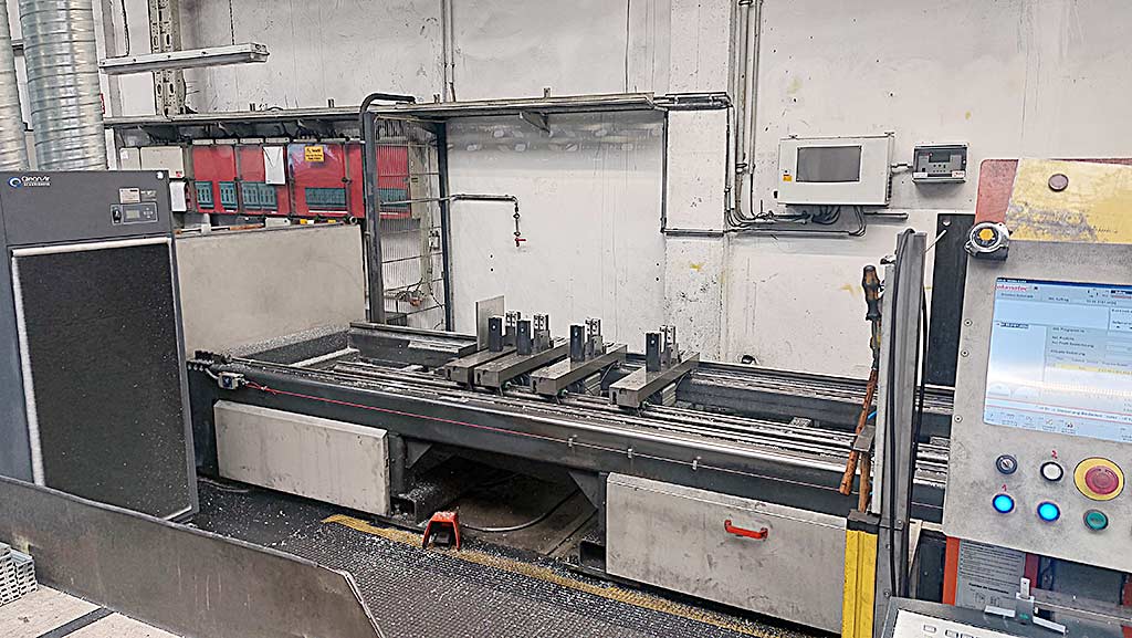 Elumatec'te 4 eksenli CNC bar işleme merkezi mevcuttur. Versiyon: 7.8m, seyahat X/Y/Z: 7720mm/845mm/620mm, maksimum işleme uzunluğu yüzey/yüzeysiz: 7720mm/7600mm, konumlandırma doğruluğu: +/-0.1mm/m, maksimum mil hızı: 24000rpm, alet tutucu: HSK-63F, alet istasyonları: 8, sıkıştırıcı cihazlar: 8, makine boyutları X/Y/Z: yaklaşık 11250mm/3400mm/2950mm, ağırlık: yaklaşık 7400kg, üretim planlama sistemine göre çalışma saatleri: yaklaşık 42200h. Makinenin saat sayacı yok. Belgeler mevcut. Sahada inceleme yapılabilir.