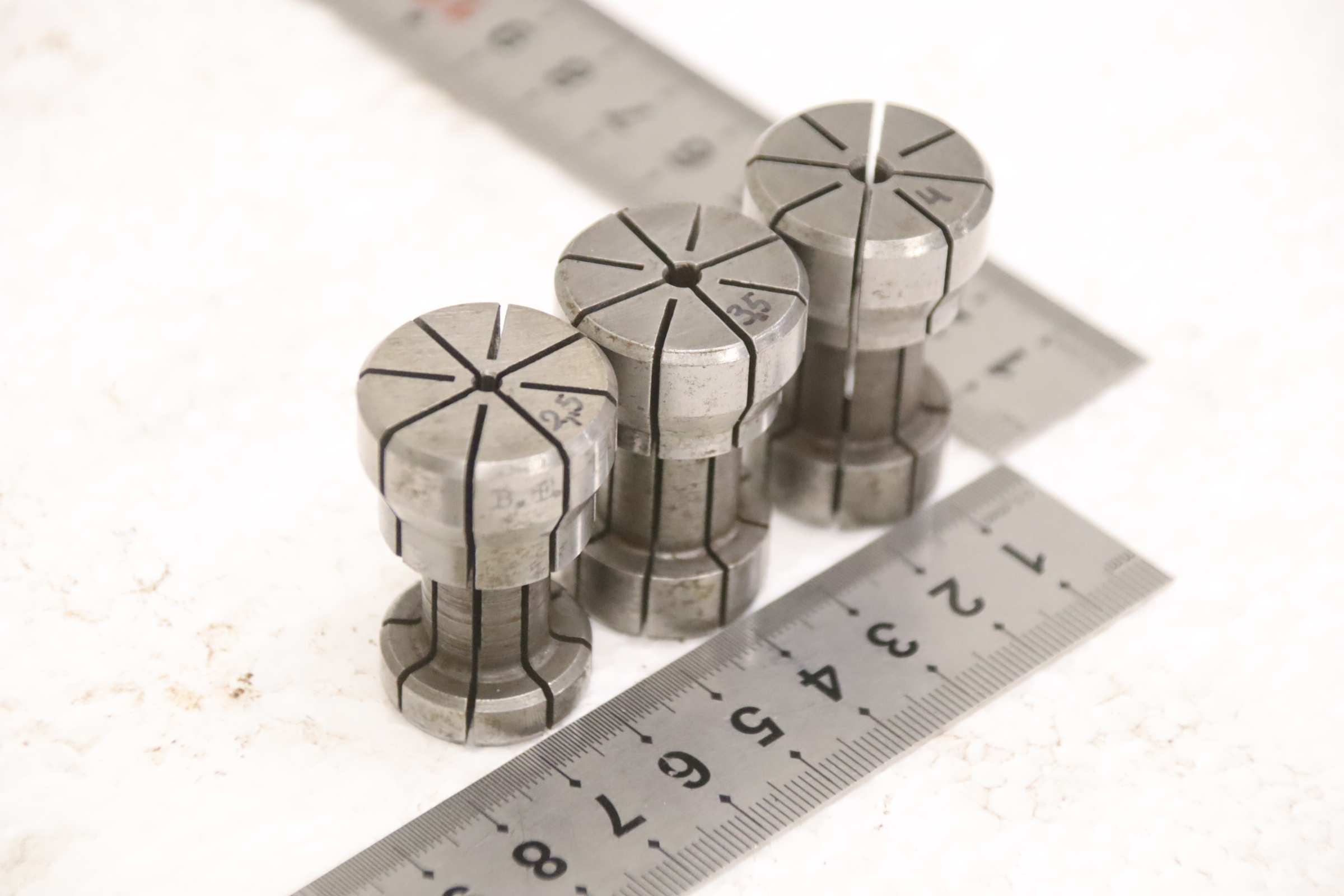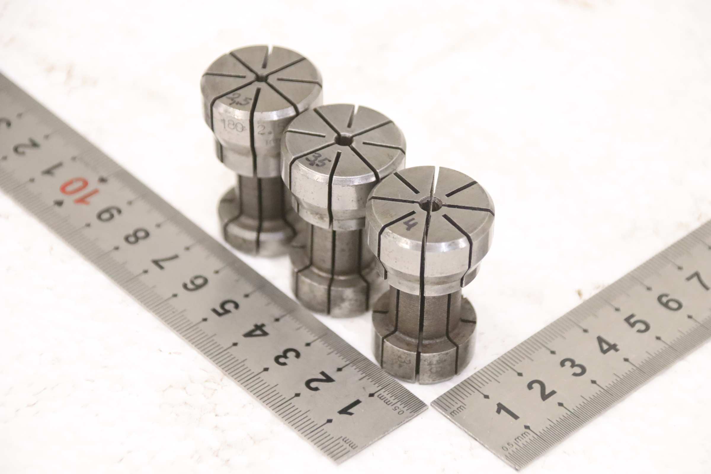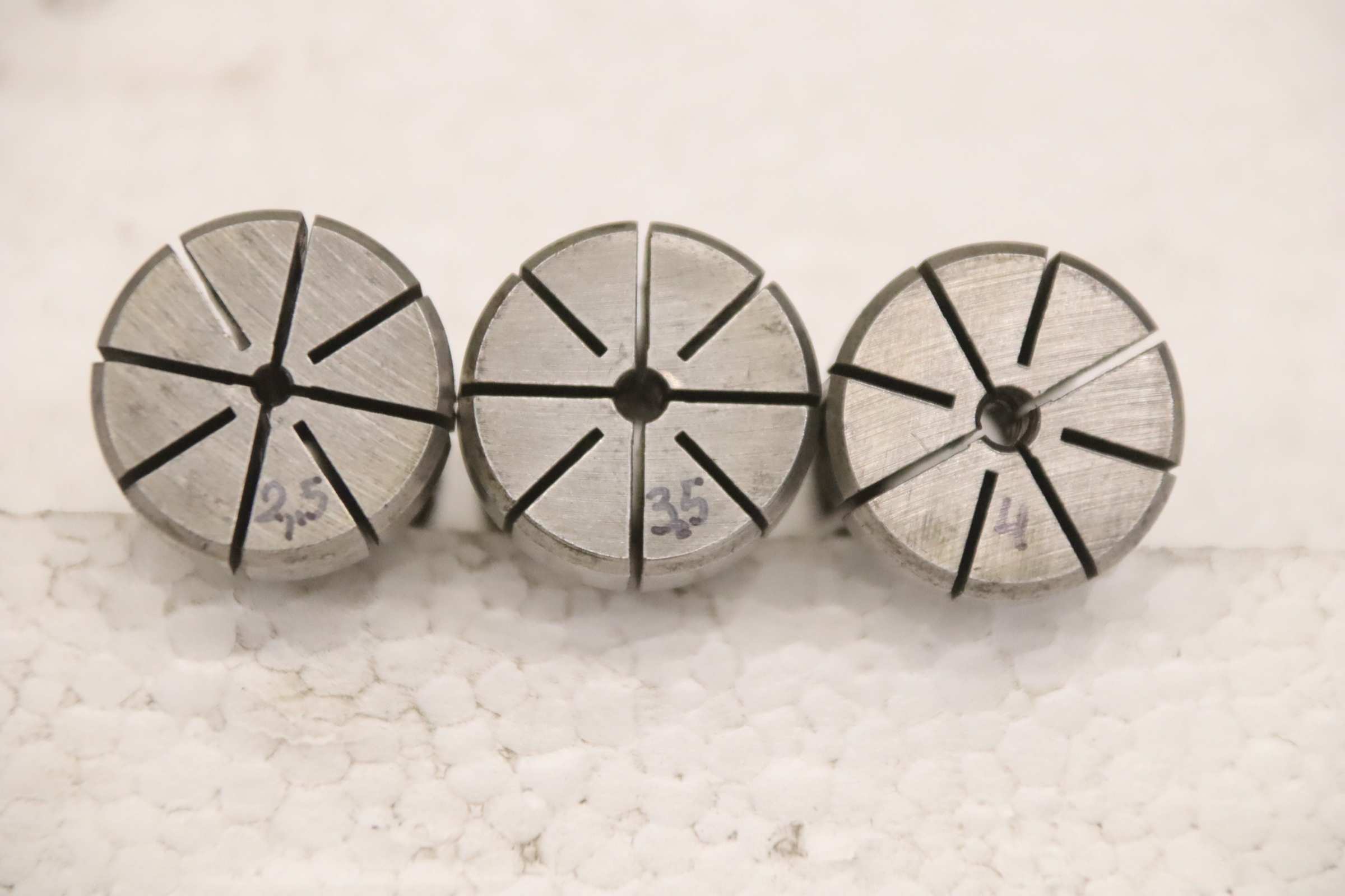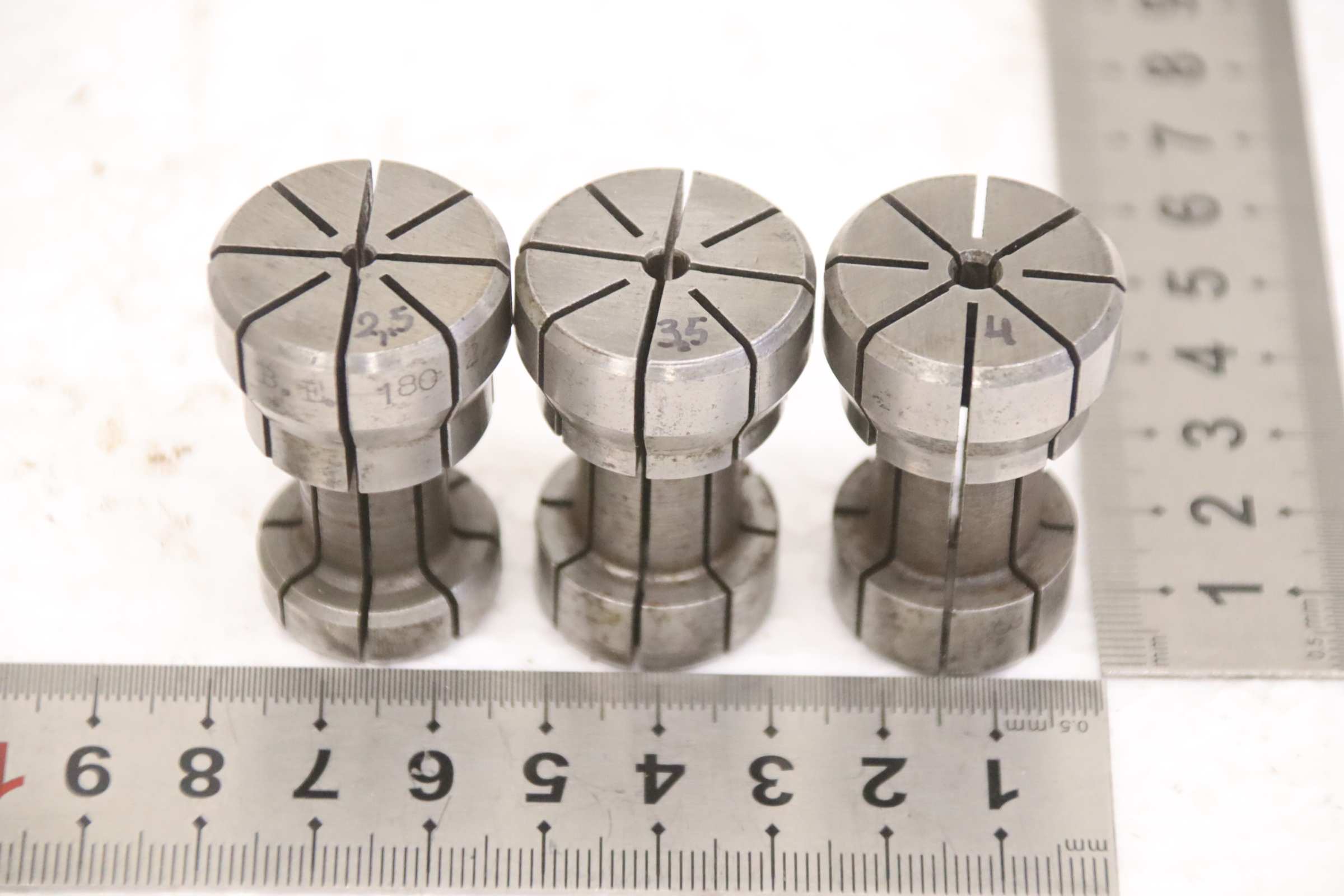Collet head, pressure collet, collet sleeves, collet, tool holder, tool holder, milling chuck, milling tool, collets -Clamping sleeves: Length 40 mm, 3 pieces -Sizes: Ø 2.5/3.5/4 mm, see photos -Price/Fee: complete -Transport dimensions: 80/25/H40 mm -Weight: 0.2 kg