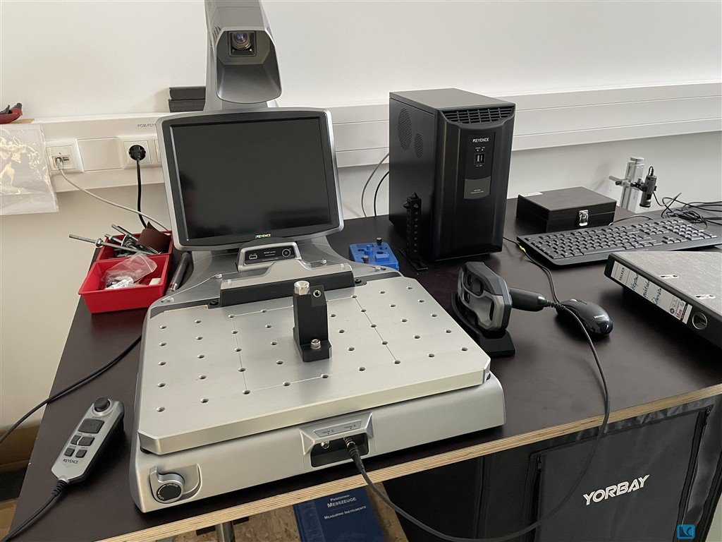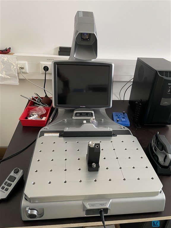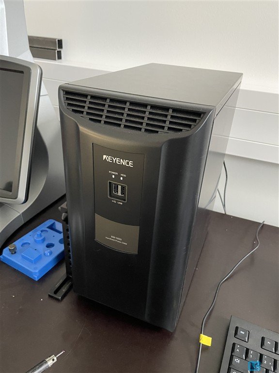 Keyence Digital Measuring Projector ? Model XM-1600General:Digital measuring projector with a high resolution image measurement system and very easy operation. Place the part on the stage and measure by pressing a button. Supports automated measurements of up to 300 dimensions within seconds.Measuring Head / Control Unit:·Sensor: Monochrome CMOS 1 inch, 20 megapixels·Display: 12.1 inch LCD monitor (WXGA 1280 x 800)·Lens: Double telecentric lensMeasuring Field and Measuring Range:·Standard measuring field: approx. 100 mm diameter·Precision mode measuring field: approx. 25 x 25 mmMeasurement Accuracy and Repeatability:·Display resolution: 0.1 micrometer·Repeatability (standard, without stage movement): approx. plus minus 1 micrometer·Precision mode (without stage movement): approx. plus minus 0.5 micrometerStage / Travel Axes:·XY measuring stage: motorized·Z axis: approx. 75 mm, ...