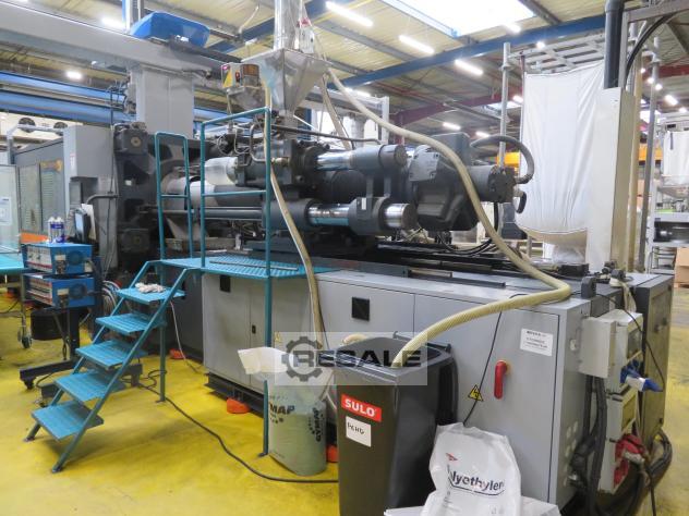 Used machine in good condition. Available for immediate delivery. - Screw diameter: 45 mm - Shot weight max: 469 g - Injection rate: 255 cm?/s - Injection pressure: 2.050 bar - Injection volume: 510 cm? - Screw speed: 230 rpm - Screw L/D ratio: 24 - Clamping force: 4.000 kN - Mould opening stroke max: 950 mm - Mould height min: 350 mm - Daylight between platens max: 1.450 mm - Heating zones: 24 - Cascades / Sequential valve gates: 12 - Platen size h: 1.200 mm - Platen size v: 1.1100 mm - Air Valves: 2/2 - Ejector force: 96 kN - Control: CC200 - Core pulls: 2 - Oil tank capacity: 955 l - Power: installed max: 45 kW - Weight: 22.300 kg - Dimensions (long x wide x high): 7.100 x 2.200 x 2.300 mm