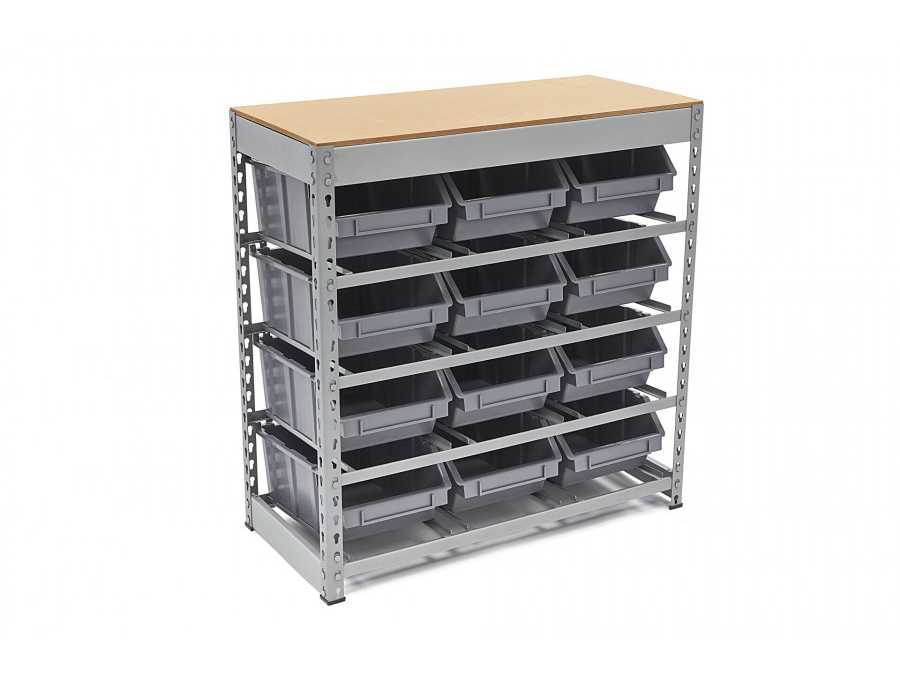 Dimensions of the containers 26 x 40 x 16 cm. Internal dimensions of the containers 23 x 35 x 15.5 cm. Thickness of the MDF top board 10 mm. PP material (polypropylene) Storage locations 12 boxes Condition: never used / new (5) Auction-ID: A1-45681-762