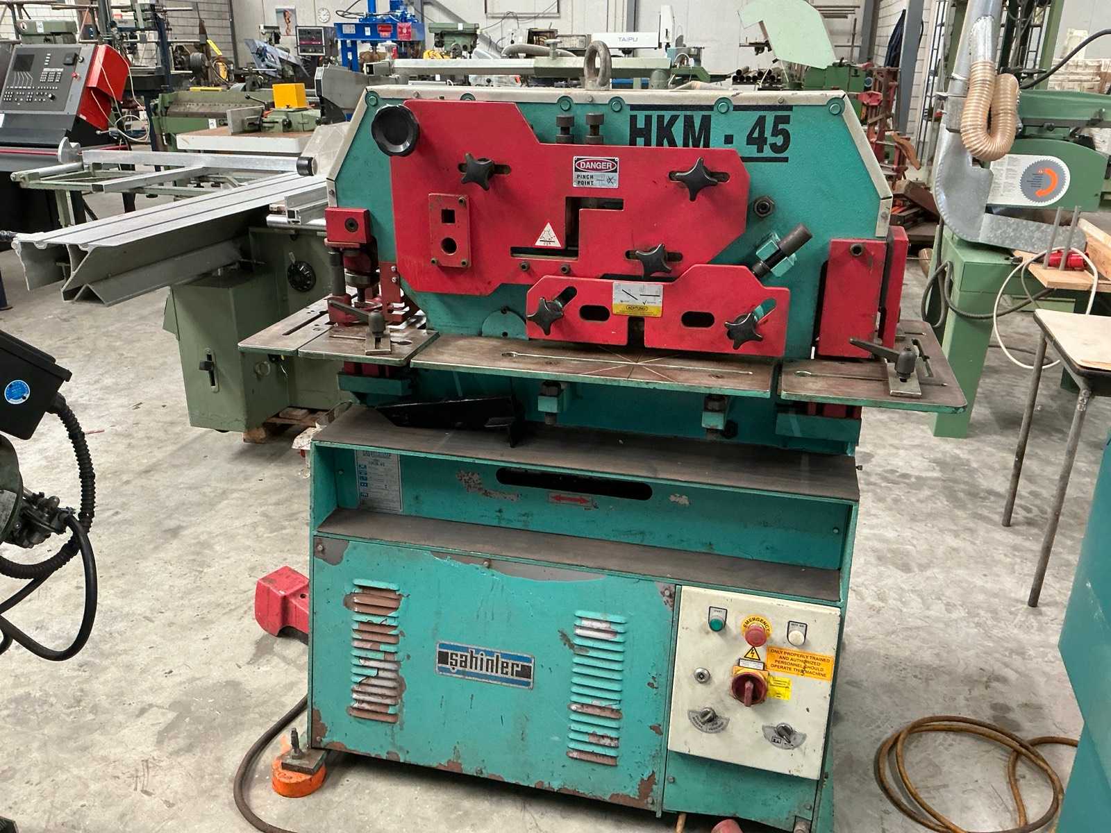 : neu : ca. 8 Wochen ab Auftragse : Spanien : 49600 €: 947.36 €: 130 to: 600 mm: 5 : 2 : 50x18 mm: 80 mm: 600x18 (max. 600x20 mit D mm: 120x120x11 (max. 150x150x mm: 45/40 mm: 130x12 mm: 250x12 mm: 15 kWhydraulic drive2 foot pedals for independant working on punching and section stationbending unit with 2 dies, V50 and V90flat steel stationWITH DEVICE FOR REDUCING DEFORMATIONangle iron station with round and square bar cuttingtriangular notching station with table and gaugepunching station with table and gaugegauge 1000 mm with contact switch, for angle / flat steel stationoperating manual in German and EnglischThe data for this ad was created with ModulMWS - the software solution of LogoTech oHG.