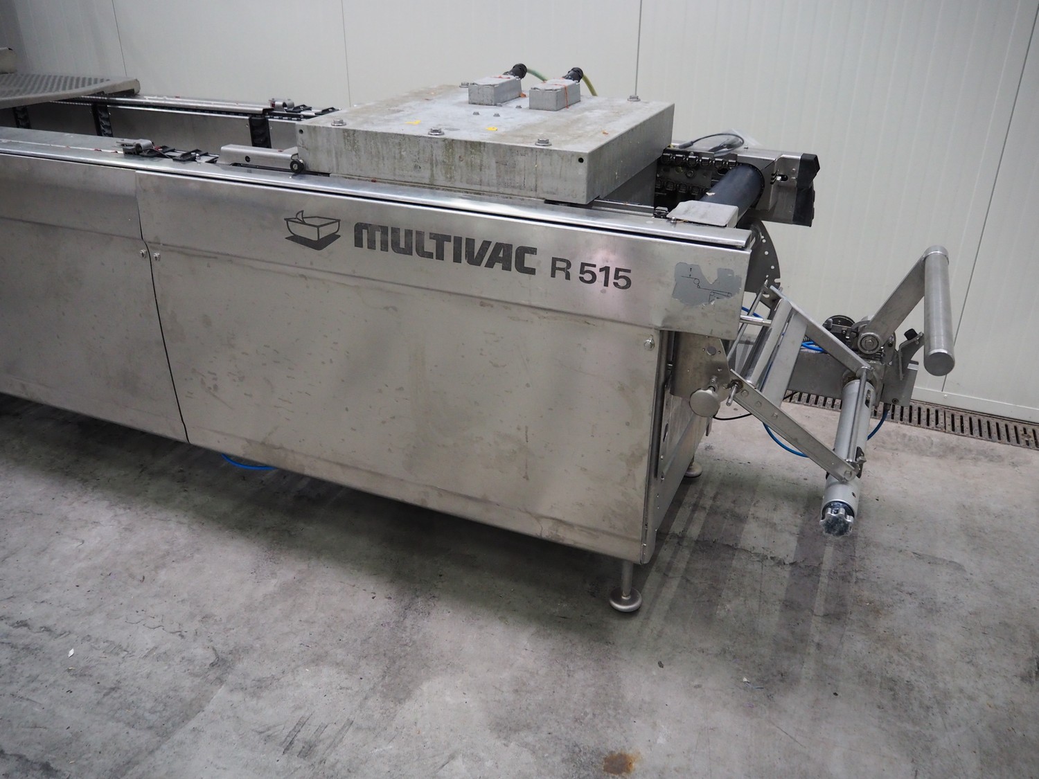 Multivac thermoformer, type: R515, serial number: 16767, year of construction: 2012, dimensions: 8000 mm x 1100 mm x 2100 mm. Including pallet with parts, without vacuum pump.