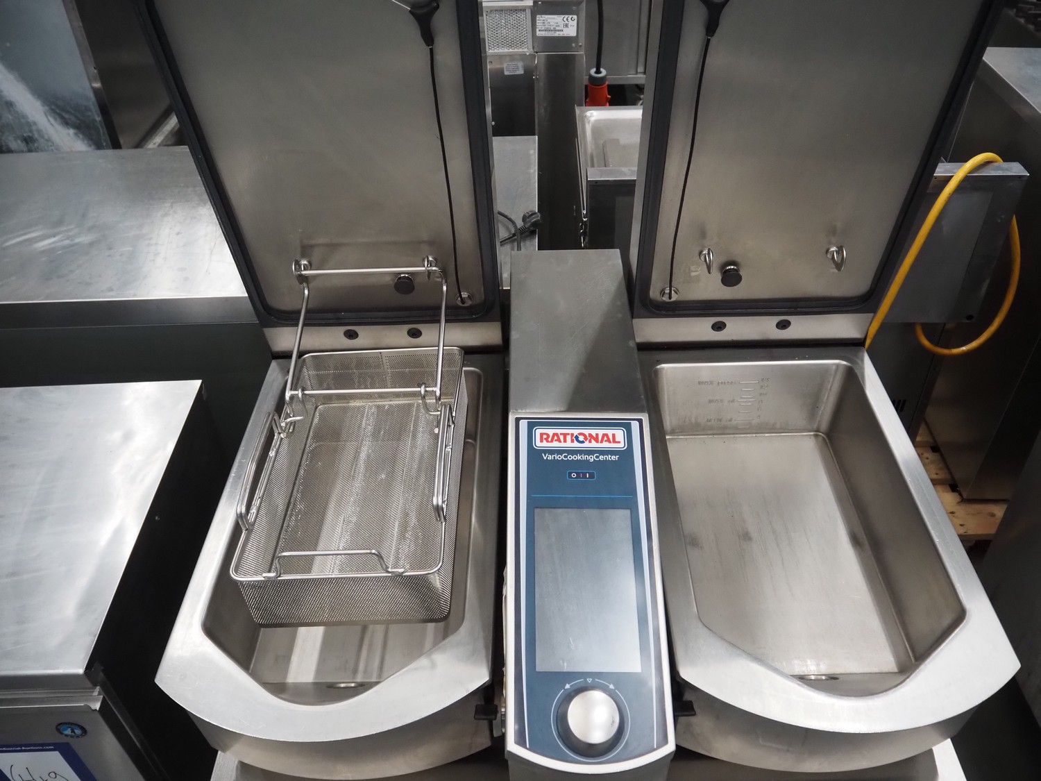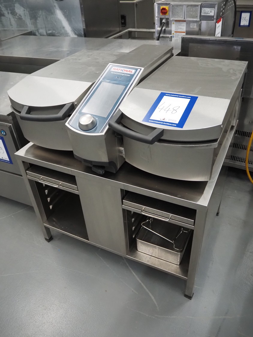 Rational Vario Cooking Center, type: VCC 112T, serial number: E12vj20038046107, year of construction: 2020, 400 V, 3 Ph, 50/60 Hz, 13 kW, temperature: 30-250°C, water pressure: 150-600 kPa, volume: (2x) 14 liter, inside dimensions: (2x) 330 mm x 440 mm x 140 mm, total dimensions: 960 mm x 740 mm x 1040 mm. Including 2 s/s baskets.