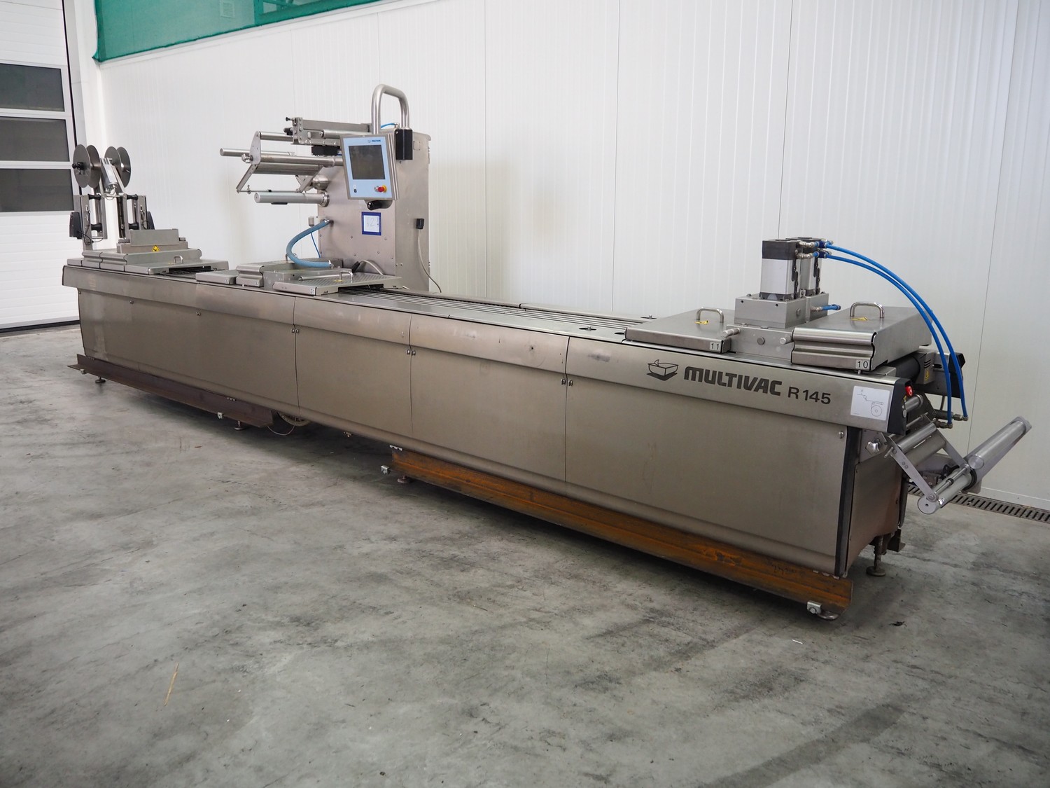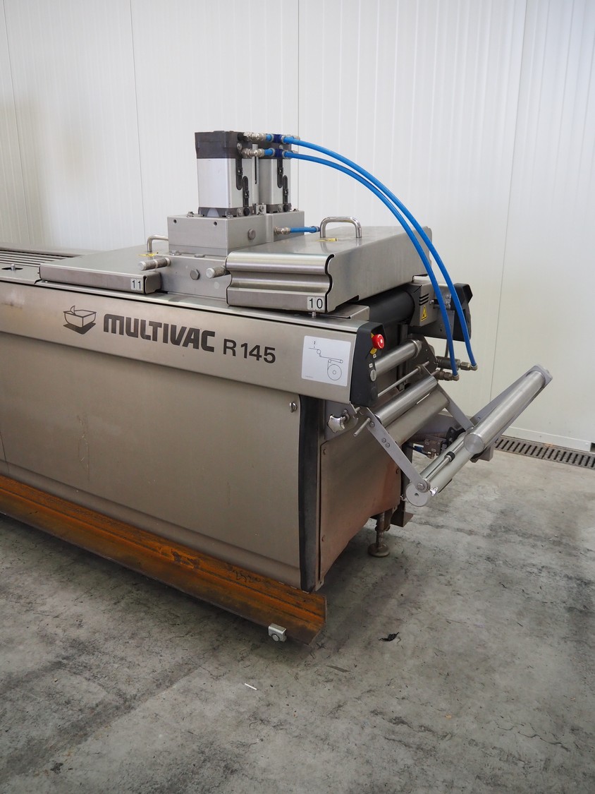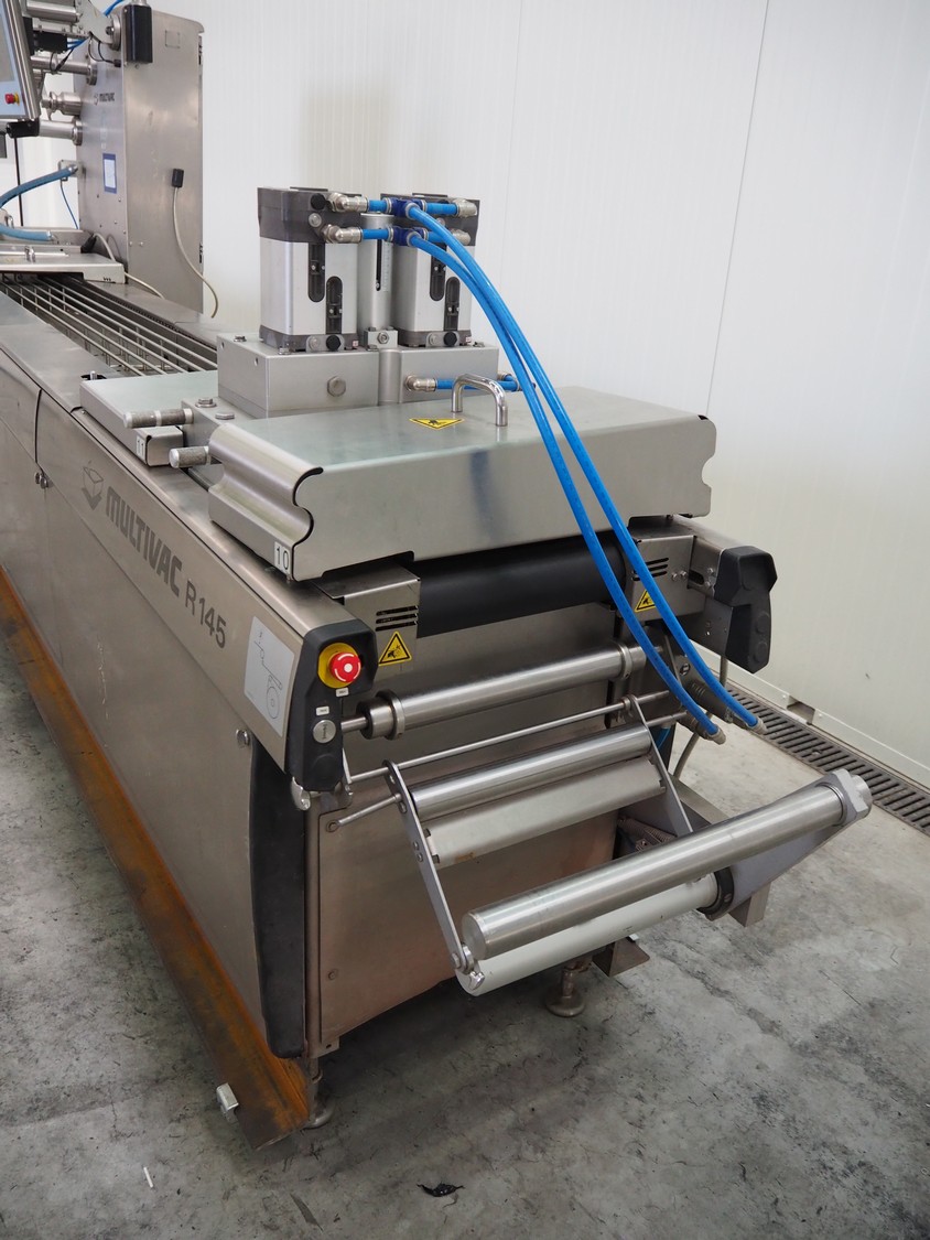 Multivac thermoformer, type: R145, serial number: 261406, year of construction: 2018, 400/230 V, 50 Hz, 3 Ph, 38/50 A, 10.5 kW, dye: (12x) 35 mm x 35 mm, total dimensions: 7100 mm x 1050 mm x 2100 mm.