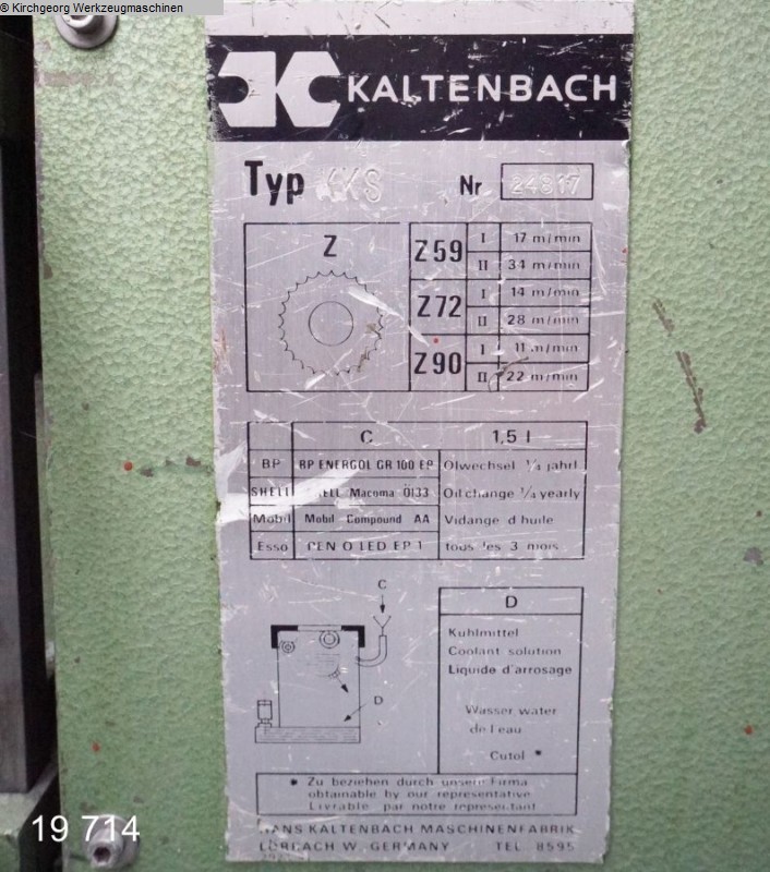 : neu : ca. 14 - 16 Wochen ab Auf : Türkei : 29000 €: 553.9 €: Doppelsäulenführung : 5000x34x1,1 mm: 15-120 m/min: 360 mm: 360 mm: 640x360 mm: rund 360 mm, quadrat 360 : rund 250 mm, quadrat 250 : 860 mm: 1.1 kW: 3 kW: 0.12 kW: 3000 mm: 1850 mm: 2000 mm: 1950 kghydraulic vicedigital readout for scale of bending anglehydraulic clamping of sawing armturning of sawing arm by handcontinuously variable down speed of sawing armautomatic sawing frame lifting after cuttingsensitive cutting pressure adjustment subject to material conditionhydromechanic tape tension readout by manometermobile control panelangular geared conical heavy duty gear unitdriven chip brushtape guiding by hard metal sheet plates and rollsautomatic tape break lockcoolant equipmentHYDRAULIC UPLIFT OF SAWING FRAMEuser manual in GERMAN or ENGLISH(sample photo - roller table see photo - optional available, additional p ...