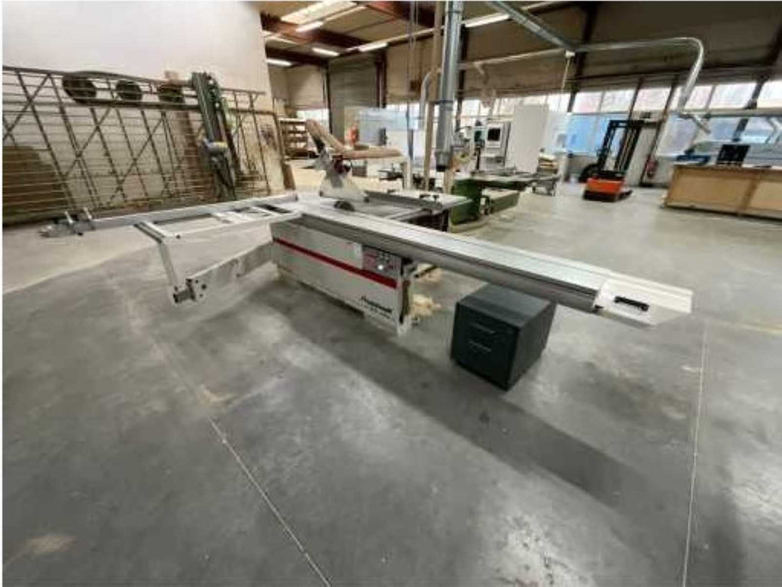 Main motor 5.5kw 3 RPMs Maximum saw blade -350mm Scoring 0.75KW -120mm Parallel guide on the right side - manual Adjustable up to 1230mm Tiltable 0-45 degrees Height adjustment (up/down) Dust extraction included - connected to the same 380 circuit Saw blade for solid and sheet material Cavity knife available Auction-ID: A3-43511-19131
