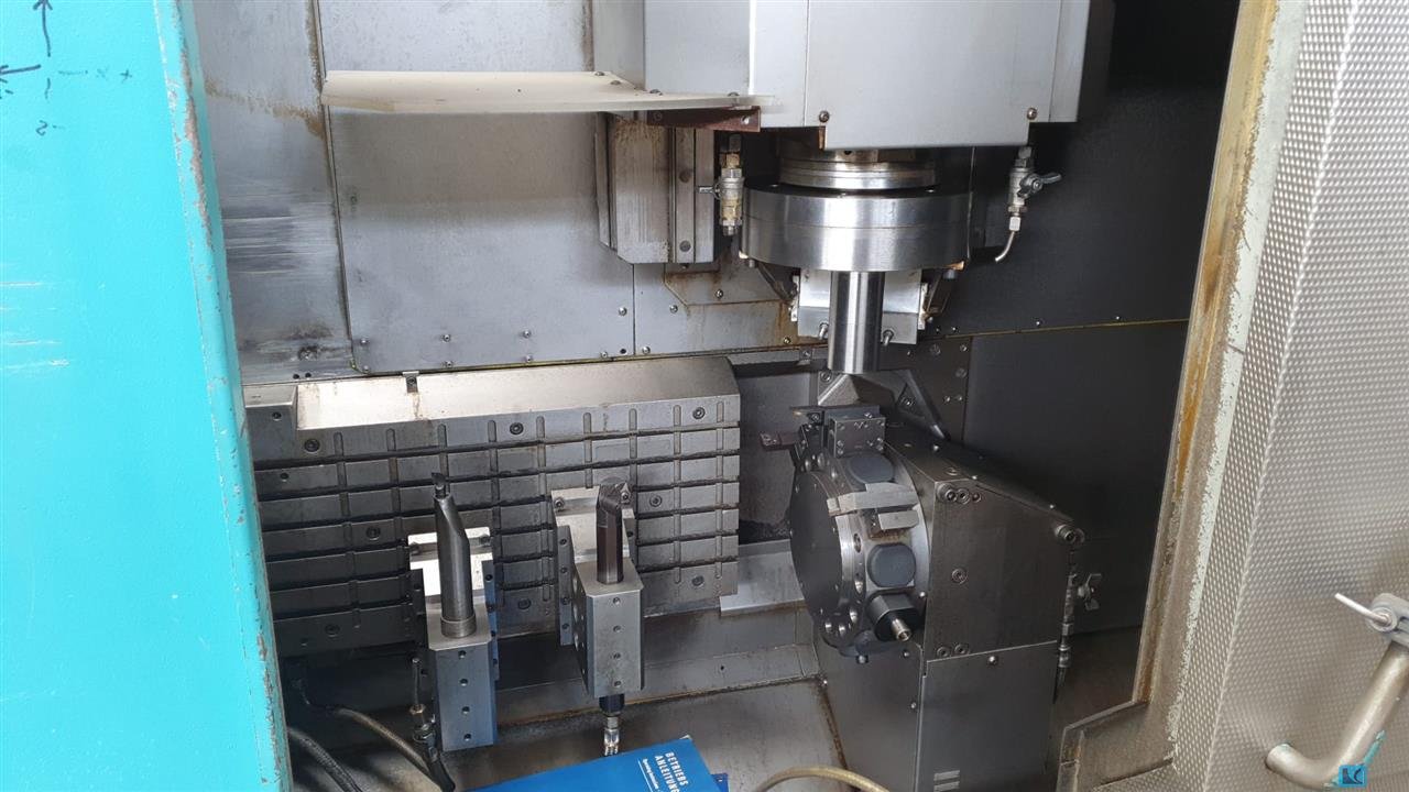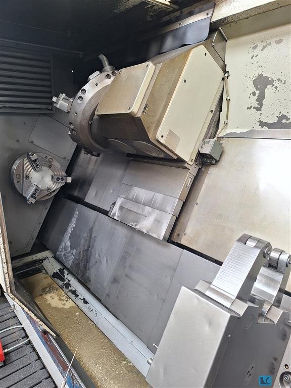 turning diameter:325 mmturning length:600 mmtotal power requirement:35 kWspindle drive:25 kWspindle turning speed range:5000 U/minspeeds of tool:4500 U/minrapid traverse X-axis:60 m/mindiverse toolholders:VDI 40 rapid traverse Z-axis:45 m/minweight of the machine ca.:6,5 tdimensions of the machine ca.:3,5 x 2,5 x 2,1 mMachine with SIEMENS 840 D control power line with shopturn- C and Y-axis, driven tools- bar loader IRCO ILS-RBK- coolant device with coolant throough revolving head- Revolver- counter spindle- chip conveyor- collet clamping - part catcher
