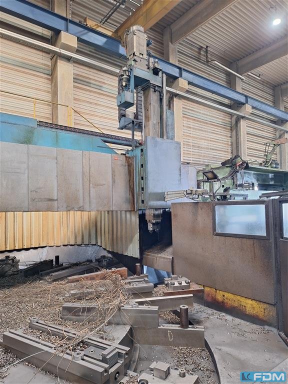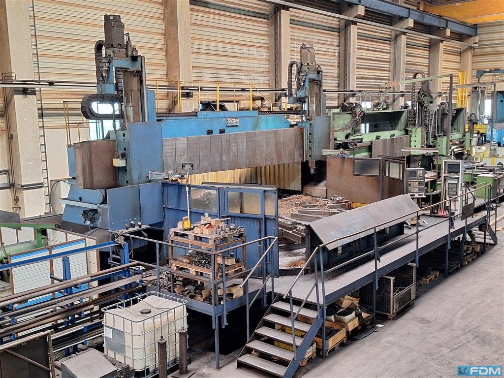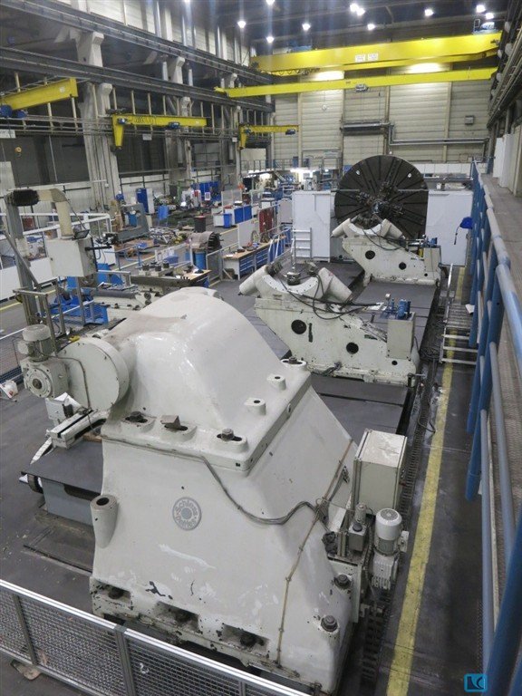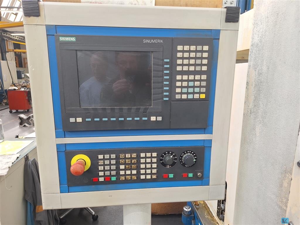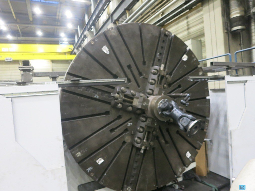 faceplate diameter:4770 mmswing diameter:7000 mmturning height:1000 mmslide stroke:1000 mmworkpiece weight max.:100000 kgfaceplate turning speed range:2 - 20 U/minfeed speeds:1 - 10000 mm/minrapid traverse:10 m/minram head dimension:250 x 250 mmmain drive:100 kWtotal power requirement:200 kWwith CNC SIEMENS 840 D2 Vertical Supports with toolchanger 12 pockets C-axis and driven tooling SK 50 37 Kw 3000 rpmChip conveyor and coolant attachment