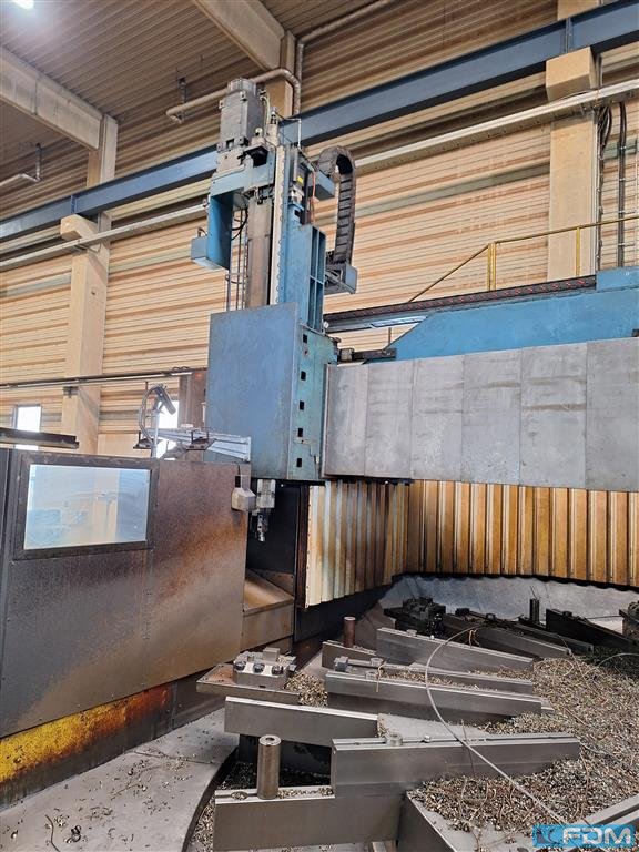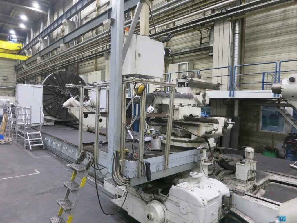 faceplate diameter:1600 mmswing diameter:1800 mmturning height:1500 mmmax. ram stroke:1200 mmfaceplate turning speed range -stepless-:2,5 - 250 U/minworkpiece weight max.:10.000 kgram head dimension:240 x 240 mmfeed range:1 - 3000 mm/minpower capacity:45 kWweight of the machine ca.:20 tmodernized and overhauled in 2010 with CNC SIEMENS 840 D12 positions automatic toolchangertelescopic coverssplash guardingchip conveyorcoolant attachmentdiverse toolholders