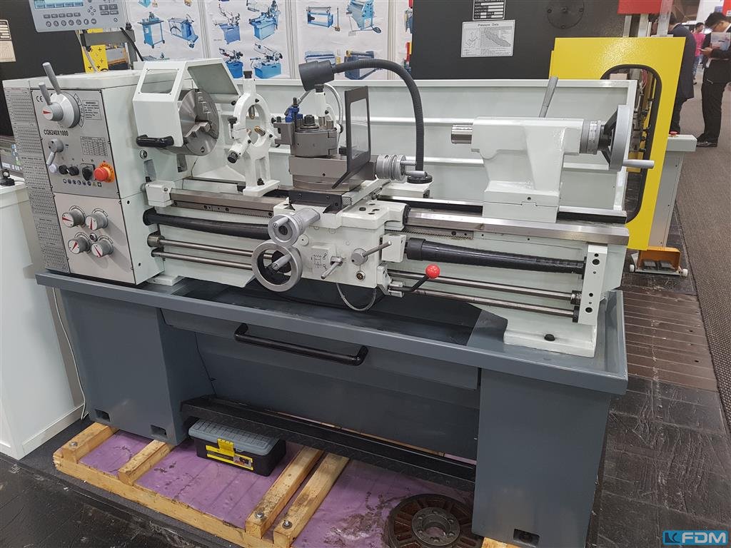 turning diameter over bed:400 mmturning diameter over slide rest:250 mmturning length:1000 mmmax swing over gap:520 mmHeight of centres:200 mmcrossed path:230 mmbed width:218 mmmain spindle bore:52 mmspindle size:MK 6 speeds::55-2000 U/minturning angle of tool post:90 gradtail stock:50 mmtaper in tailstock:MK 4 threading metric:0,4-7 mmthreading WHITWORTH:4-60 TPI total power requirement:2,2 kWdimensions of the machine ca.:1940 x 820 x 1545 mmweight of the machine ca.:750 kgtailstock quill:110 mmtapping modul:0,4-3 mmtapping diametral:8-84 Gang/Zoll