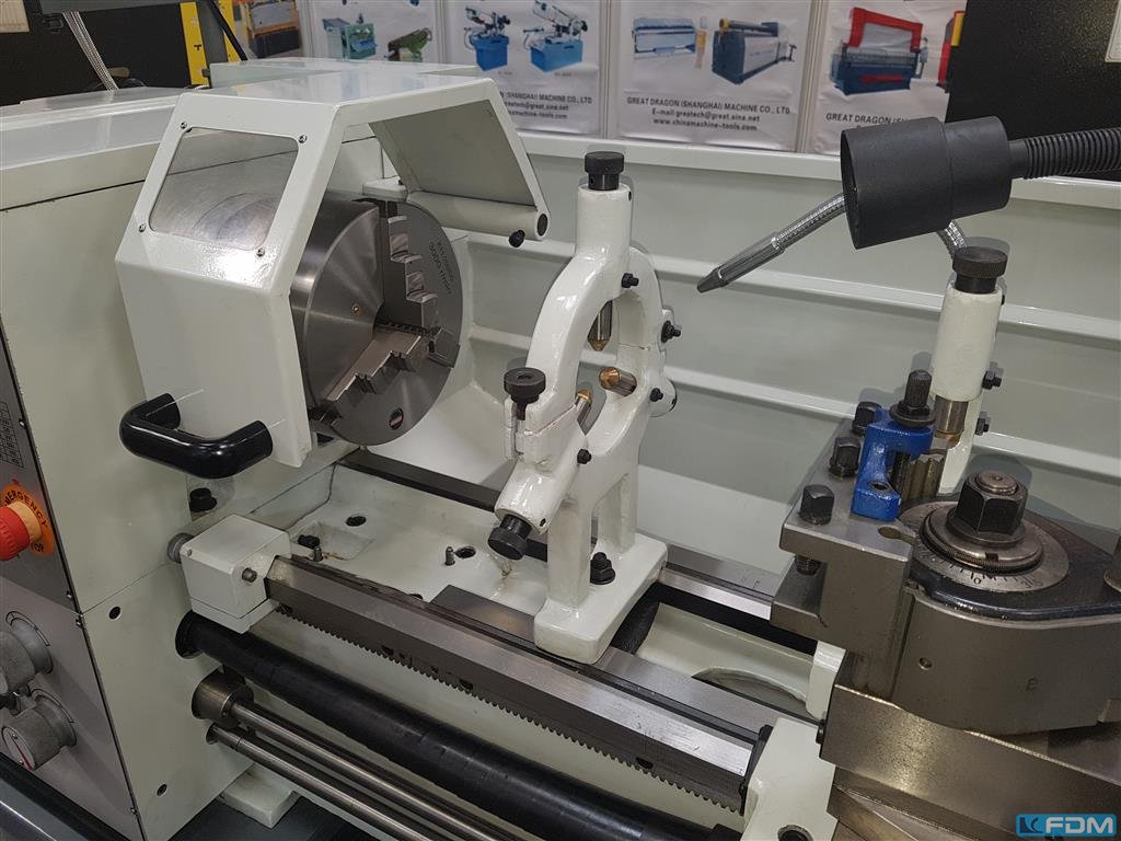 turning diameter:800 mmturning length:2965 mmmax. turning dia. over saddle:520 mmspindle bore:92 mmturning speed range:3 - 1800 U/minspindle head:Größe 11 total power requirement:37 kWweight of the machine ca.:6,5 tdimensions of the machine ca.:5,2 x 2,2 x 1,9 mTeach In Control MTC-K3-jaw chuck ROTAS Dia. 400 mmface plate RÖHM Dia. 630 mm4-station toolholder system PARAT 1 fixed steady coolant attachment and chip conveyor