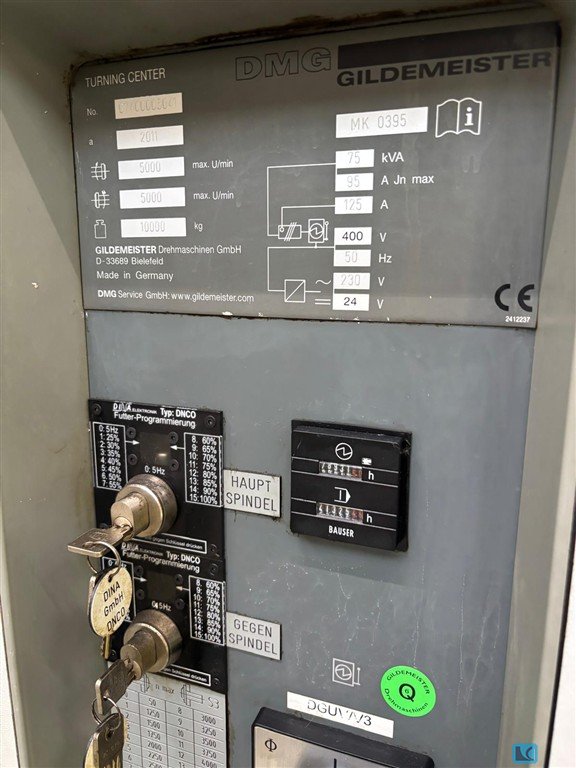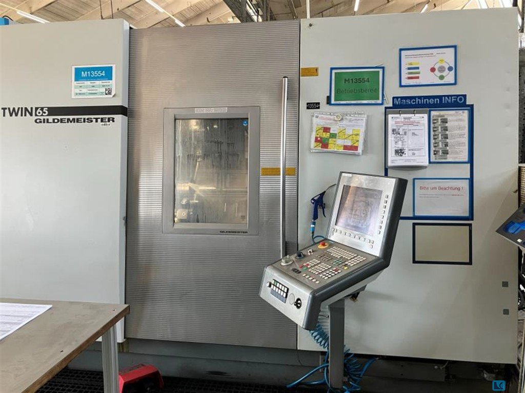 turning diameter:120 mmturning length:650 mmweight of the machine ca.:11 tdimensions of the machine ca.:5,032 x 3,048 x 2,445 mGildemeister MF Twin 65-II lathe with loading automation.This machine is suitable as a counter spindle machine for 4-axis machining on the main and counter spindles, complete machining (turning, drilling, milling, Y-axis, B-axis) of bar and shaft parts.