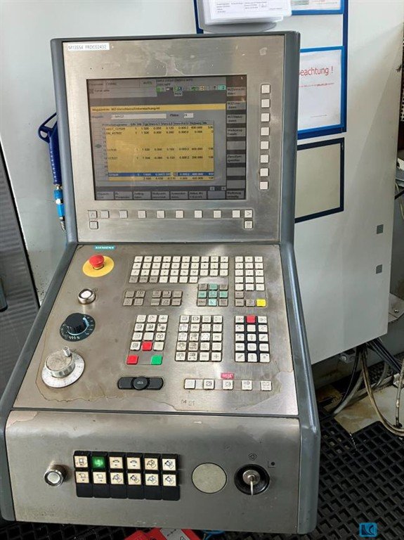 swing diameter:260 mmcontrol:840 D SIEMENSturning speeds:3.500 1/minspindle drive:36 / 28 kWchucking diameter:260 mmtravel -x axis:900 mmtravel -z axis:400 mmturret head:12 Pos.tool holder:VDI 40 rapid power traverse in X-and Z direction:100 / 30 m/mindimensions of the machine ca.:5,3 x 2,4 x 3,31 mCNC vertical lathe with 2 spindles,2x RÖHM power chucks dia. 315mm,