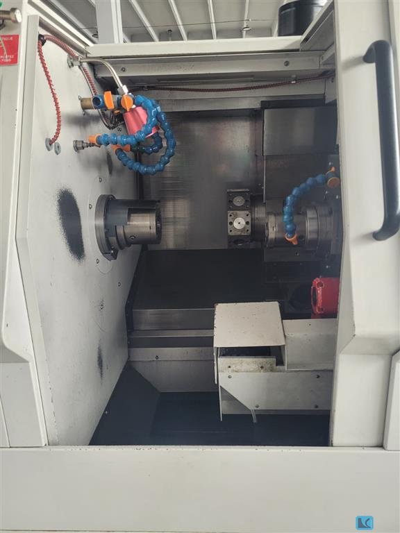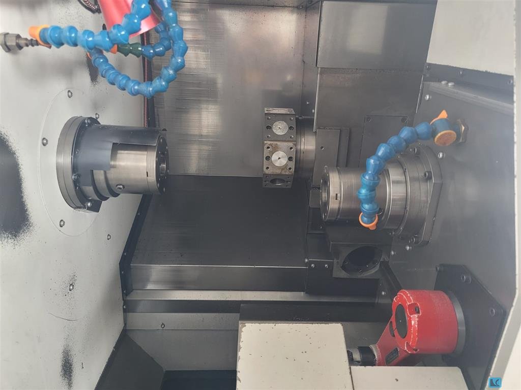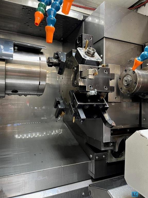 turning diameter:370 mmturning length:200 mmSpindle 1 RPM:4000 1/mincontrol:Siemens 840 D Spindle 2 RPM:4000 1/minpower capacity:L / R 18/24 kWmax. torque on the spindle:630 nMC-Axis:0,001° Turret No.1 stations / rotary tools:12/12 VDI 40Turret No.2 stations / rotary tools:12/12 VDI 40turning speed range - milling:3000 1/minpower capacity - milling spindle:8,8 kWtorque rotary tools:28 NmBar capacity spindle 1:85 mmtotal power requirement:65 kVAweight of the machine ca.:13 tdimensions of the machine ca.:5,7x2,4x2,1 mTravel x1:260 mmTravel x2:260 mmTravel Y1:600 mmTravel y2:600 mmPower Chuck:2 x 250 mm manual tool eye:l & r High performance 6-axis subspindle CNC-Lathe with twin turren and rotating tools.
