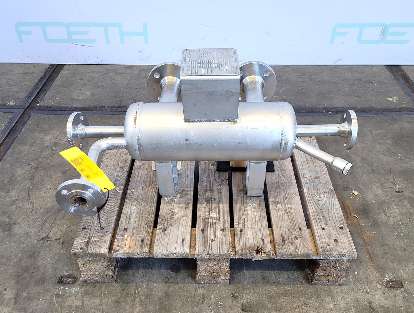 General SKUR0874 MakeJaeggi Guentner AG (CH) LocationBarneveld Type26,8 m2 Pressure Working pressure shell16 Bar Working pressure tubes10 Bar Main Features Shell (Material)Stainless steel Tube (Material)Stainless steel Surface26.8 m2 Specified Features - Shell and tube heat exchanger MaterialStainless steel 1.4435 (316L) Heat exchangercheck Horizontalcheck Heating surface26.8 m2 Tube capacity125 ltr U-typecheck Number of tubes:89 Tube diameter16 Tube lengthca. 5500mm Wall thickness tubes1mm Max. temperature-30/250 Degr.C Shell capacity175 ltr Shell diameter355,6mm Shell length2716mm Wall thickness shell4mm Max. temperature-30/250 Degr.C Shell connectionsDN50 (1x), DN40 (1x), DN15 (1x) Cover connectionsDN100 (2x) Information No.2612 Year of construction1996 Mounted on legscheck Floorspace3,7x 0,6 M Total height1,3 M Weight600 KgBiotechnologyAgrochemic ...