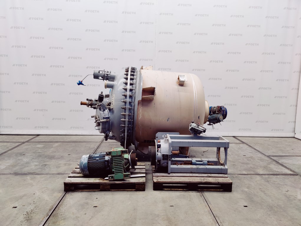 General SKU323S571 LocationBarneveld MakePfaubler TypeAE 2500 Pressure Working pressure6 Bar Vacuum possiblecheck Working pressure jacket6 Bar Vacuum possible jacketcheck Main Features MaterialGlass Volume2500 Ltr. Motor11 KW Specified Features - Glass-lined Reactor MaterialGlass - Enamel (WWG) Glass Reactors Reactorcheck Capacity3515 Ltr. (nett. 2500 Ltr.) Vessel sizesdia. 1600x1600 mm Dished bottomcheck Dished top sidecheck Manholecheck Top connectionsDN100 (5x), DN200 (2x) OutletDN100 With jacketcheck Max. temperature-25/200 degr. C With propellor stirrercheck Motor11 kW 220/380 Volt Information No.50718 Year of construction1990 Floorspace2,2x2,2 M Total height3,6 M Weight4330 Extra SpecificationsLosted its firepolish:BiotechnologyAgrochemicalsCatalysts & fillersGlass-lined ReactorsSolventsDetergent & surf.Other pharmaceuticsCosmeticsLubricants & ol ...