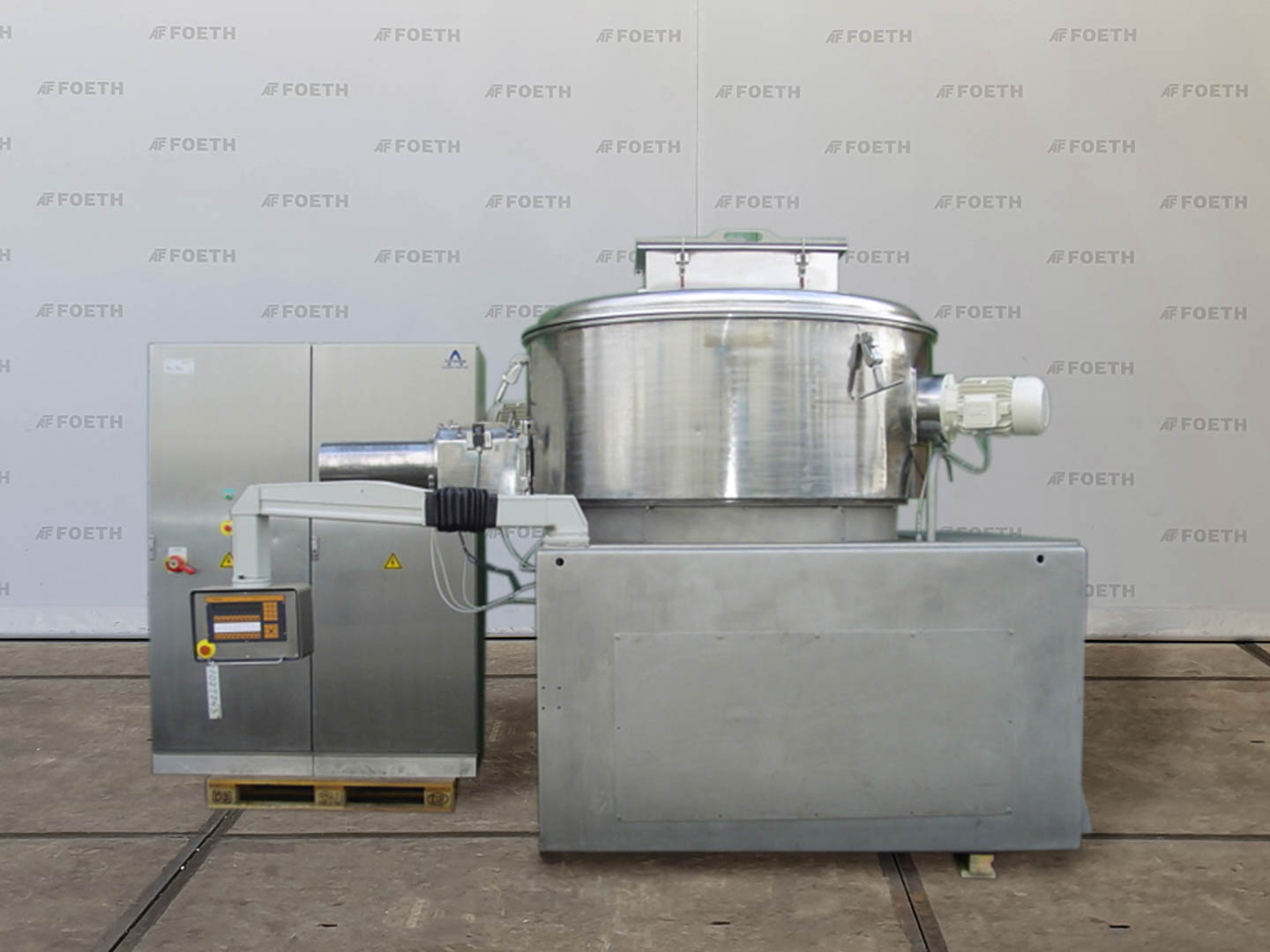 Yüksek hızlı karıştırıcı granülatör Aeromatic PMA 1800 Brüt hacim 1800 Lt. Normal çalışma hacmi 1500 Lt. Ortalama granül parti ağırlığı 825 Kg Pervane hızları 59/118 rpm Pervane motor kapasiteleri 60/75 kW Granülatör hızları 1500/3000 rpm Granülatör motor kapasitesi 7,5/11 kW