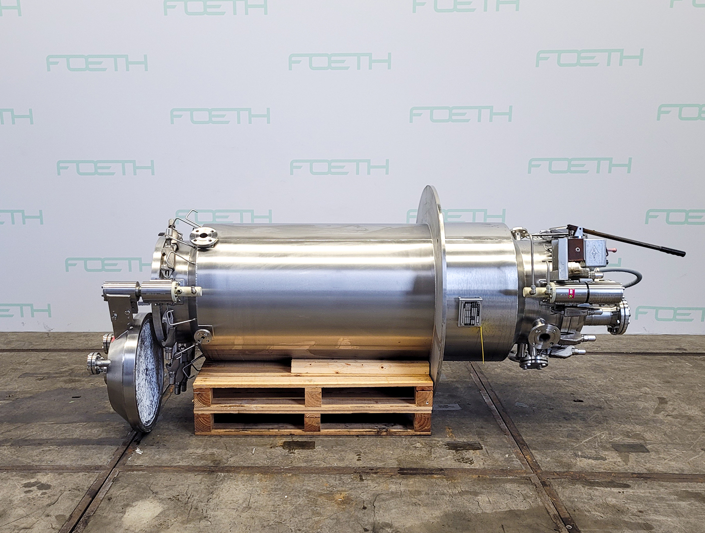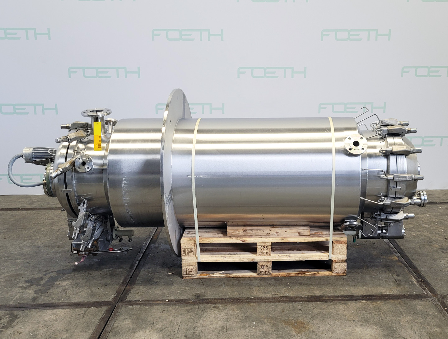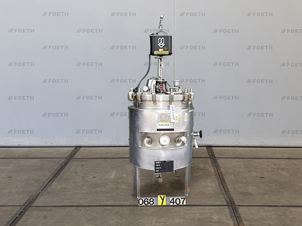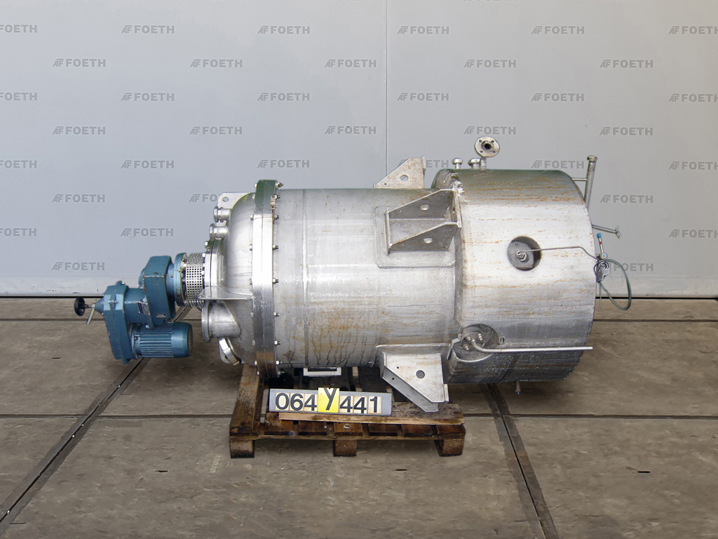 General SKU092U685 MakeHoeksma & Velt No.809-391 Year of construction1988 LocationBarneveld Pressure Working pressure0.5 Bar Vacuum possiblecheck Working pressure jacket4 Bar Main Features MaterialStainless steel Volume750 Ltr. Motor5 KW Specified Features - Stainless Steel Reactor Reactorcheck Capacity750 l Vessel sizesdia. 800 x 1500 mm Dished bottomcheck Dished top sidecheck Top connections6x dia. 25 mm + dia. 80 mm Outlet25 mm With jacketcheck Max. temperature120°C With gate type stirrercheck Ekato, type HWL-60 Motor 5 kW (1450 rpm) with variator Speed mixing shaft17 - 80 rpm Stainless Steel Reactors MaterialStainless steel 1.4306 (304L) Information Floorspace1,2 x 1,2 m Total height4 m Weight2000 kgAgrochemicalsPlastic & polymersStainless Steel ReactorsCatalysts & fillersSolventsDiscountDetergent & surf.Other pharmaceuticsCosmeticsOrganicsLubricants ...